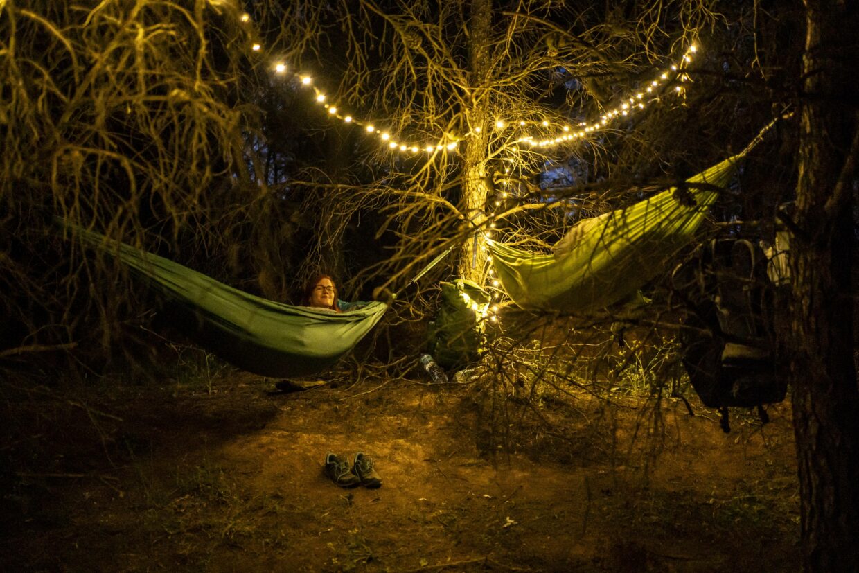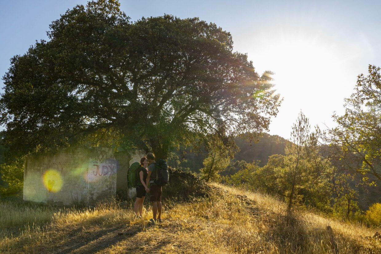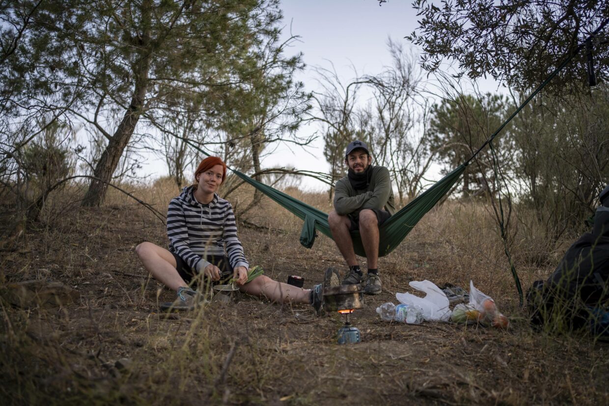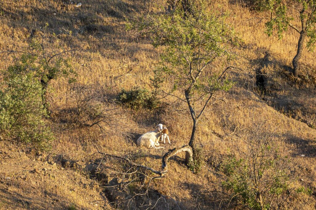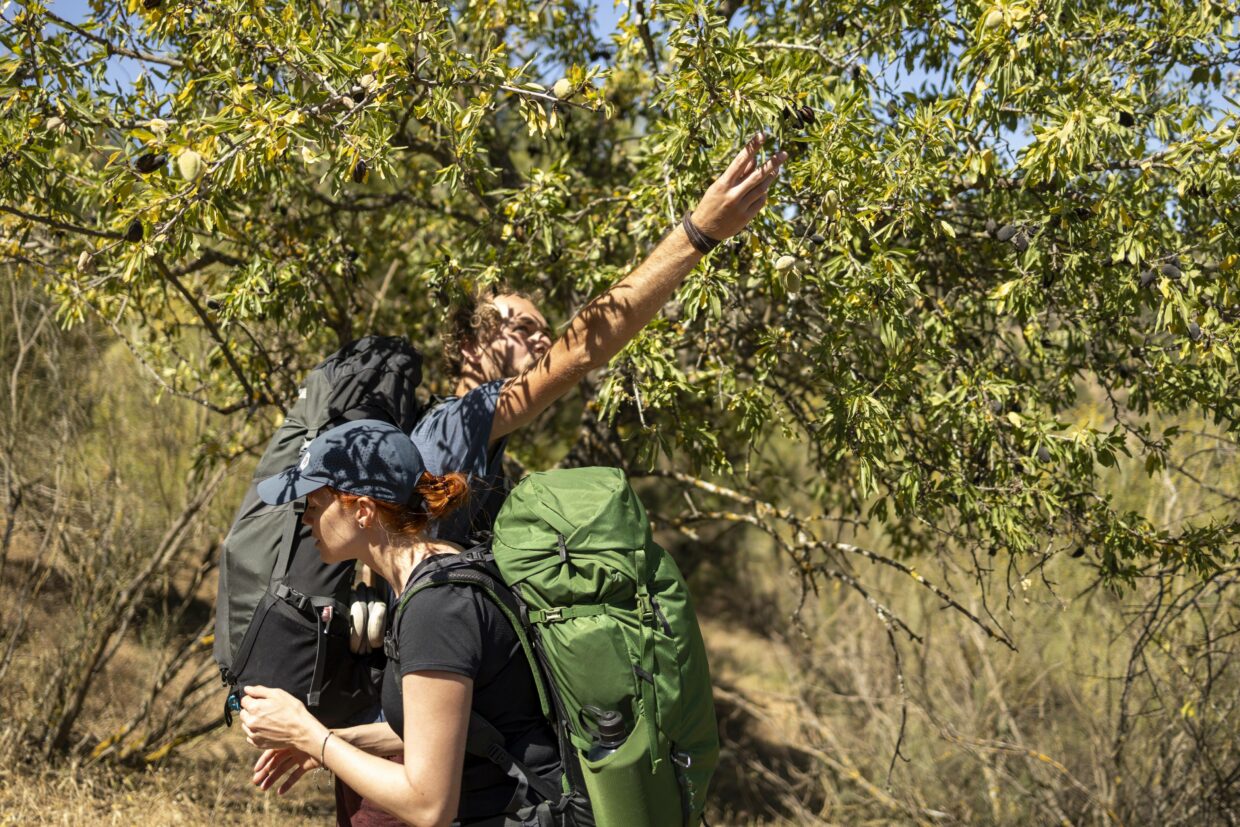 Der Weg führte zunächst durch viele Felder, Plantagen und Weiden. Die Hitze drückte und die Höhenmeter zerrten an unseren 17kg Gepäck, die größtenteils aus Wasser und Essen bestanden. Unterwegs gab es Mispeln, Zitronen, Pflaumen und Mandeln. Letztere waren zwar noch nicht reif doch später entdeckten wir, wie viele Mandeln vom letzten Jahr noch getrocknet an den Bäumen hingen. Kaum waren wir im Nadelwald, wuchs das Bedürfnis, die Hängematten aufzuspannen. Die Pause tat gut, doch bis wir uns unseren Schlafplatz verdient haben, waren es noch ein paar Kilometer.