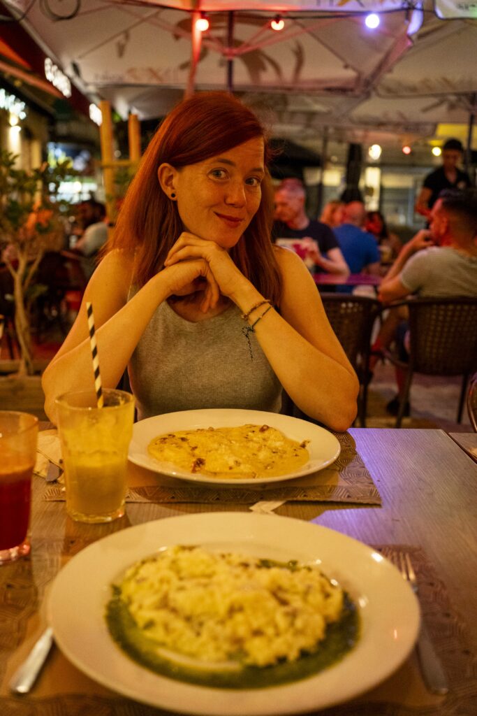 Die spanische Esskultur mit Tapas ist reizend, vor allem wenn man nicht weiß was man will. Man bestellt einfach 5 Gerichte und man wird satt. Wir wussten aber irgendwann ganz genau, was wir wollten. Die 4-Käse Roquefort-Tortellini und das Grüner-Spargel-Austernpilz Risotto waren so überragend, dass wir sie gleich zweimal hatten. Man hätte sich auch Museen anschauen können oder in einer Führung etwas über die Geschichte der Stadt, das römische Theater, die Garum-Herstellung oder die tragische Rolle im Spanischen Bürgerkrieg erfahren… aber schlendern war schöner. Am Strand und im kalten Meer waren wir auch, bloß die Beweisfotos dazu unterliegen Geheimhaltungsstufe #3