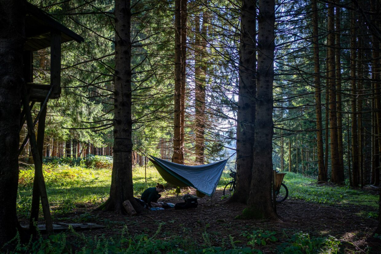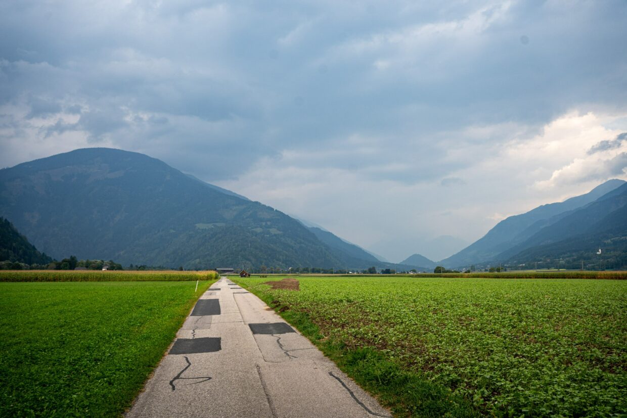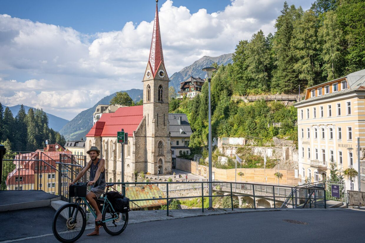 Der wahrscheinlich härteste Abschnitt stand uns wahrscheinlich am zweiten Tag vor Bad Gastein bevor. Der Kurort beeindruckte mit einem mächtigen Wasserfall in der Ortsmitte und großen Hotelfassaden (von der altmodischen, hübschen Sorte). Hinter Bad Gastein kam nicht mehr viel bis zur Autoschleuse Tauernbahn, welche uns die Überquerung der Tauern mit einer 10km Bahnfahrt ersparen soll. Da wir nicht wussten, was uns danach erwarten würde, nahmen wir Vorlieb mit unserer Seite des Berges. Leider waren die meisten schönen Waldflächen eingezäunt, was uns die Hoffnung schon fast aufgeben ließ.