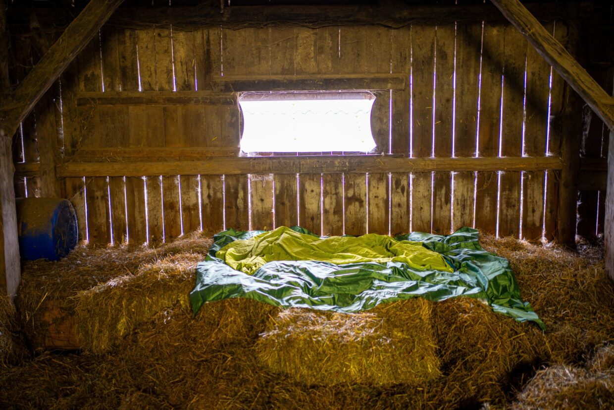 Der nächhste Tag startete etwas schleppend mit Warten auf die Autoschleuse, doch setzte sich nach der Durchquerung des Gebirges umso schwungvoller fort: auf 8km ging es gut 500m bergab. Ohne viel zu treten ging es mit 50-60km/h gut vorwärts. Die Regenwolken hatten wir leider nicht immer hinter uns gelassen und bald war absehbar, dass wir einen trockenen Unterschlupf für die Nacht brauchen werden. Wegen des Harley-Treffens in der Gegend waren leider alle Unterkünfte ausgebucht. Glück im Unglück: wir fanden einen netten Gast- und Landwirt, der uns auf Nachfrage den Zugang zu seinem Heulager gewährte. Umgeben von Katzen und Hühnern war es dennoch eine sehr erholsame Nacht.