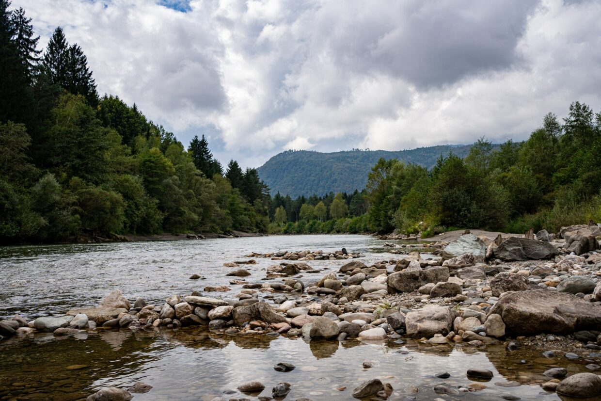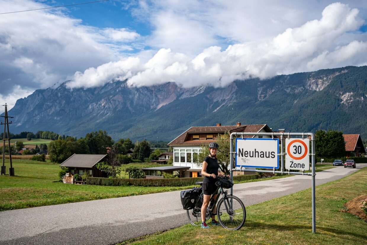 Beginn der Tour war Salzburg, wo es nach einem langen, aber wenig erholsamen Schlaf im Flixbus um 10 Uhr auf die Räder ging. Ein Großteil der Strecke verlief entlang der Salzach, die uns immer tiefer in die Berge führte. Der Weg ging stetig bergauf, was mit dem Zusatzgepäck – auch wenn es nur wenig war – ordentlich auf die Muskeln ging. Bei den ersten Hügeln mussten wir uns noch vergewissern, ob nicht die Räder einen Widerstand haben, doch mit der Zeit gewöhnten wir uns daran. Die kurzen Passagen, an denen es bergab ging, waren dafür umso schneller. Nach 66km suchten wir uns ein Waldstück in Flussnähe, wo wir übernachten konnten. Ein Blick zurück zeigt in der Ferne die erste Bergkette, die wir seit Salzburg durchquert haben. Am nächsten Morgen gab es dann Frühstück an der eiskalten Salzach.