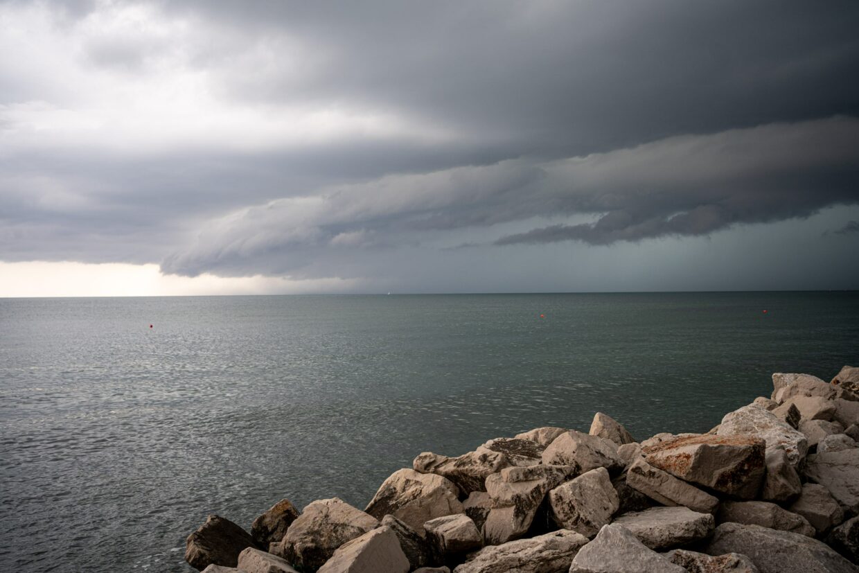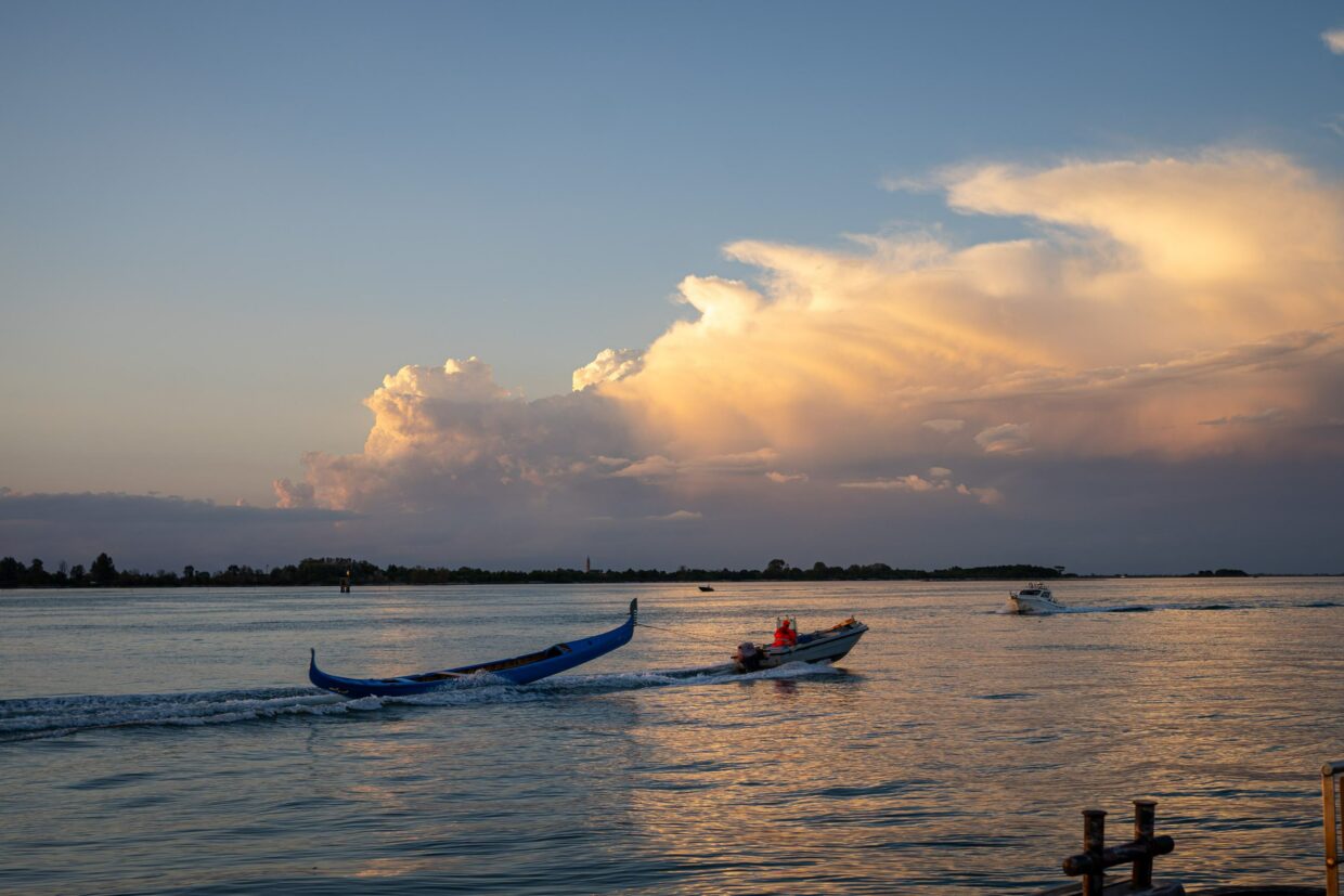 Am insgesamt sechsten Tag packte Hanni der Ehrgeiz, dass wir es noch bis nach Grado schaffen könnten. mit 83km wäre das unsere weiteste Tagesstrecke der bisherigen Tour gewesen. Wir verkürzten also die Pause und radelten motiviert richtung Ozean weiter. Das Wetter schien unbeständig und von dem langen Damm, der auf die Halbinsel Grado führt, konnte man das Unwetter bereits über dem Meer an uns vorbeiziehen sehen… dachten wir.
