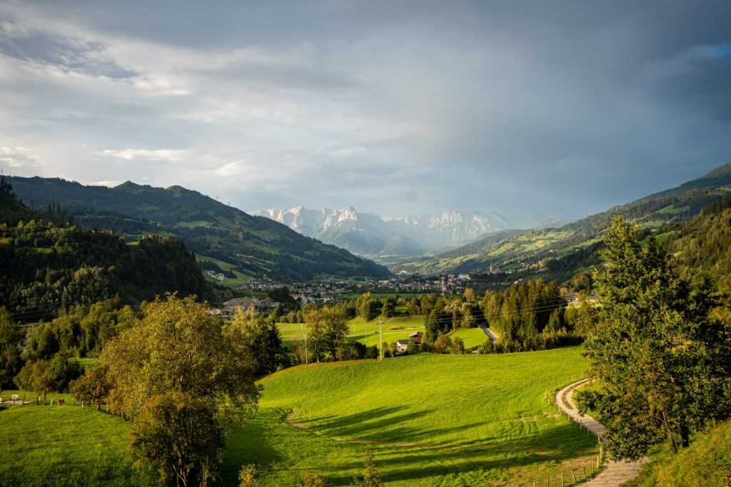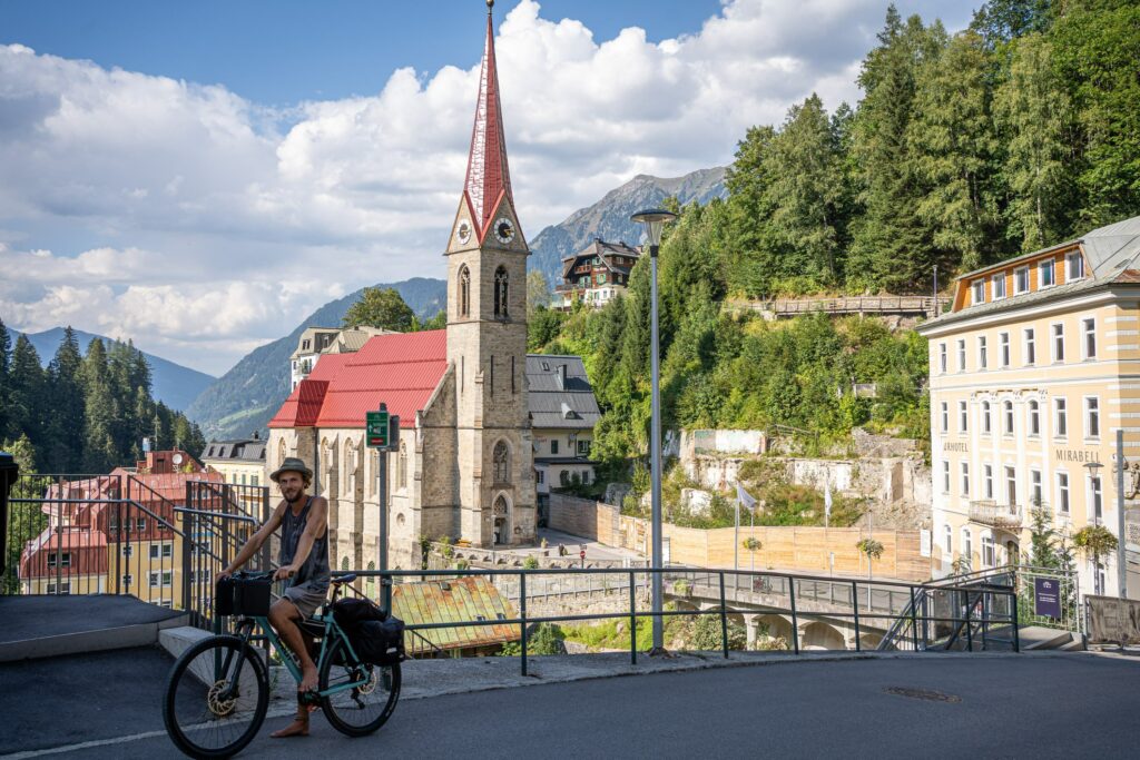 Der wahrscheinlich härteste Abschnitt stand uns wahrscheinlich am zweiten Tag vor Bad Gastein bevor. Der Kurort beeindruckte mit einem mächtigen Wasserfall in der Ortsmitte und großen Hotelfassaden (von der altmodischen, hübschen Sorte). Hinter Bad Gastein kam nicht mehr viel bis zur Autoschleuse Tauernbahn, welche uns die Überquerung der Tauern mit einer 10km Bahnfahrt ersparen soll. Da wir nicht wussten, was uns danach erwarten würde, nahmen wir Vorlieb mit unserer Seite des Berges. Leider waren die meisten schönen Waldflächen eingezäunt, was uns die Hoffnung schon fast aufgeben ließ.