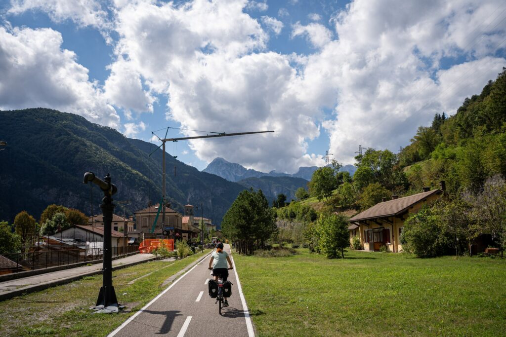 In Italien ging es dann auf einem alten Eisenbahngleis ewig leicht bergab durch die Täler, Berge und Tunnel und Brücken sogar vorbei an alten Eisenbahnstationen. Am Tag darauf ging es dann mehr durch die Ortschaften.
