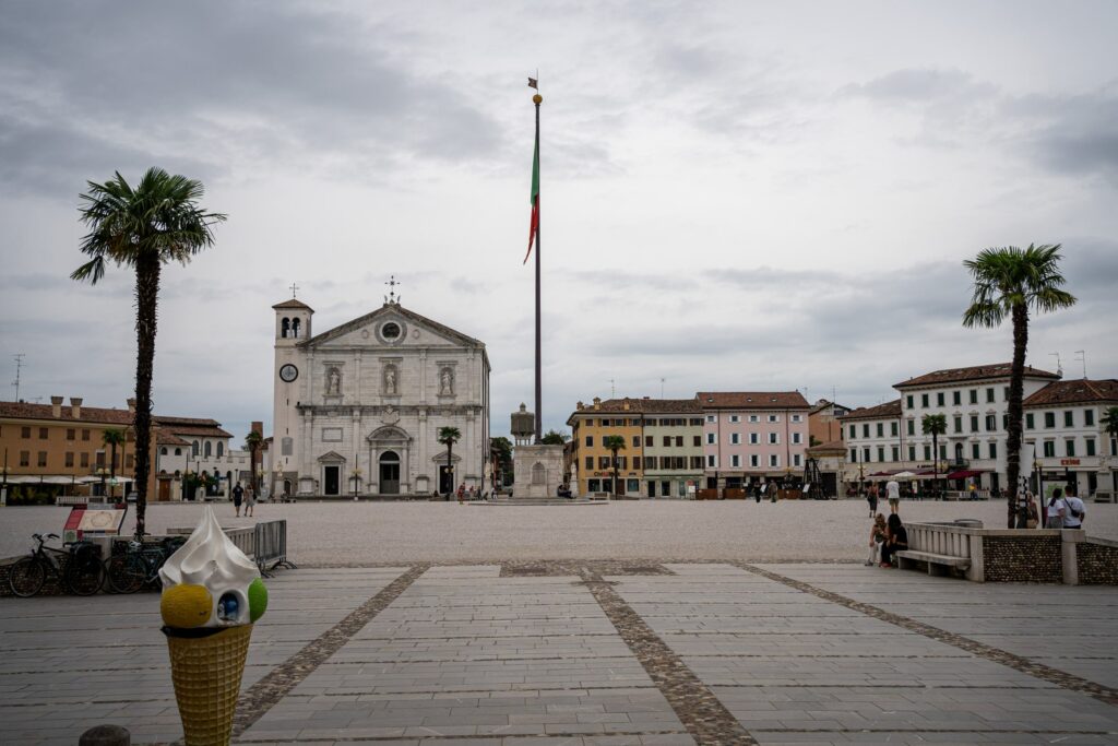 Am insgesamt sechsten Tag packte Hanni der Ehrgeiz, dass wir es noch bis nach Grado schaffen könnten. mit 83km wäre das unsere weiteste Tagesstrecke der bisherigen Tour gewesen. Wir verkürzten also die Pause und radelten motiviert richtung Ozean weiter. Das Wetter schien unbeständig und von dem langen Damm, der auf die Halbinsel Grado führt, konnte man das Unwetter bereits über dem Meer an uns vorbeiziehen sehen… dachten wir.