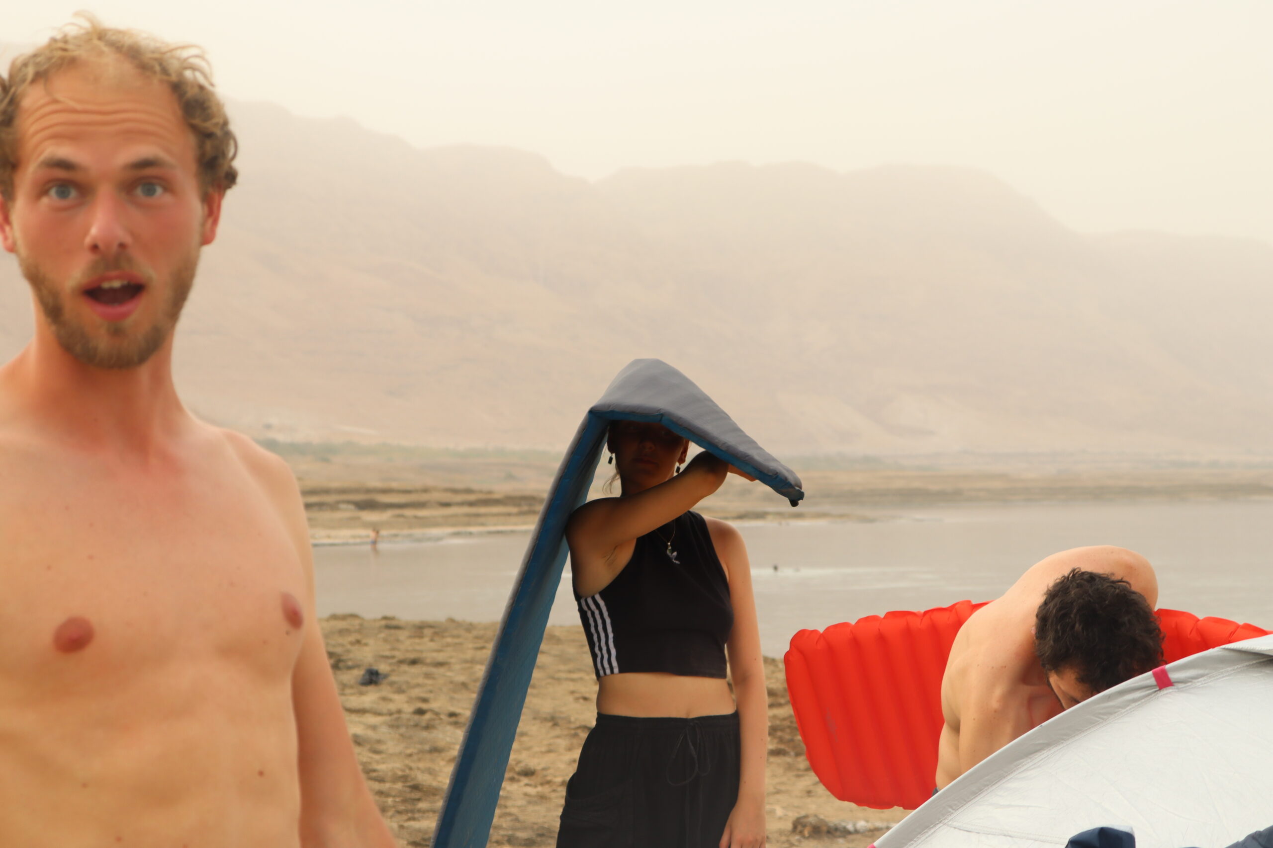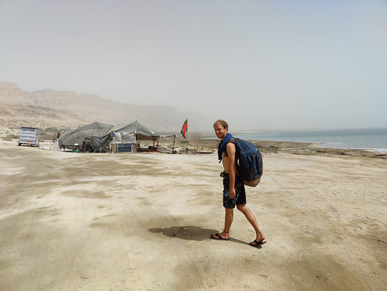 Long Story Short: die Heißen Quellen bei Nacht waren wunderbar, leider aber salzig. Es eignete sich hervorragend, um mein Essen Aufzuwärmen. Mein Zelt schlug ich direkt daneben auf, weshalb der Boden ziemlich warm war. Mit nur einem Liter Trinkwasser, einem leeren Handyakku und einer Powerbank mit Wasserschaden wurde sollte die Nacht schwierig werden. Doch mit gepökelter Haut im überhitzten Zelt war ein Austrocknen eigentlich vorprogrammiert. Es war jedenfalls nach Mitternacht, als ich im Sternenlicht versuchte, meine Sachen zu packen und zur Straße zu gelangen. Ab da hatte ich wieder verdammt großes Glück: Eine Gruppe Jugendlicher nahm mich einige Kilometer bis zur Hauptkreuzung mit. Von dort hat es nur 1 Auto gedauert, bis ich meine Fahrt 130km quer durch die West Bank an den See Genezareth hatte.