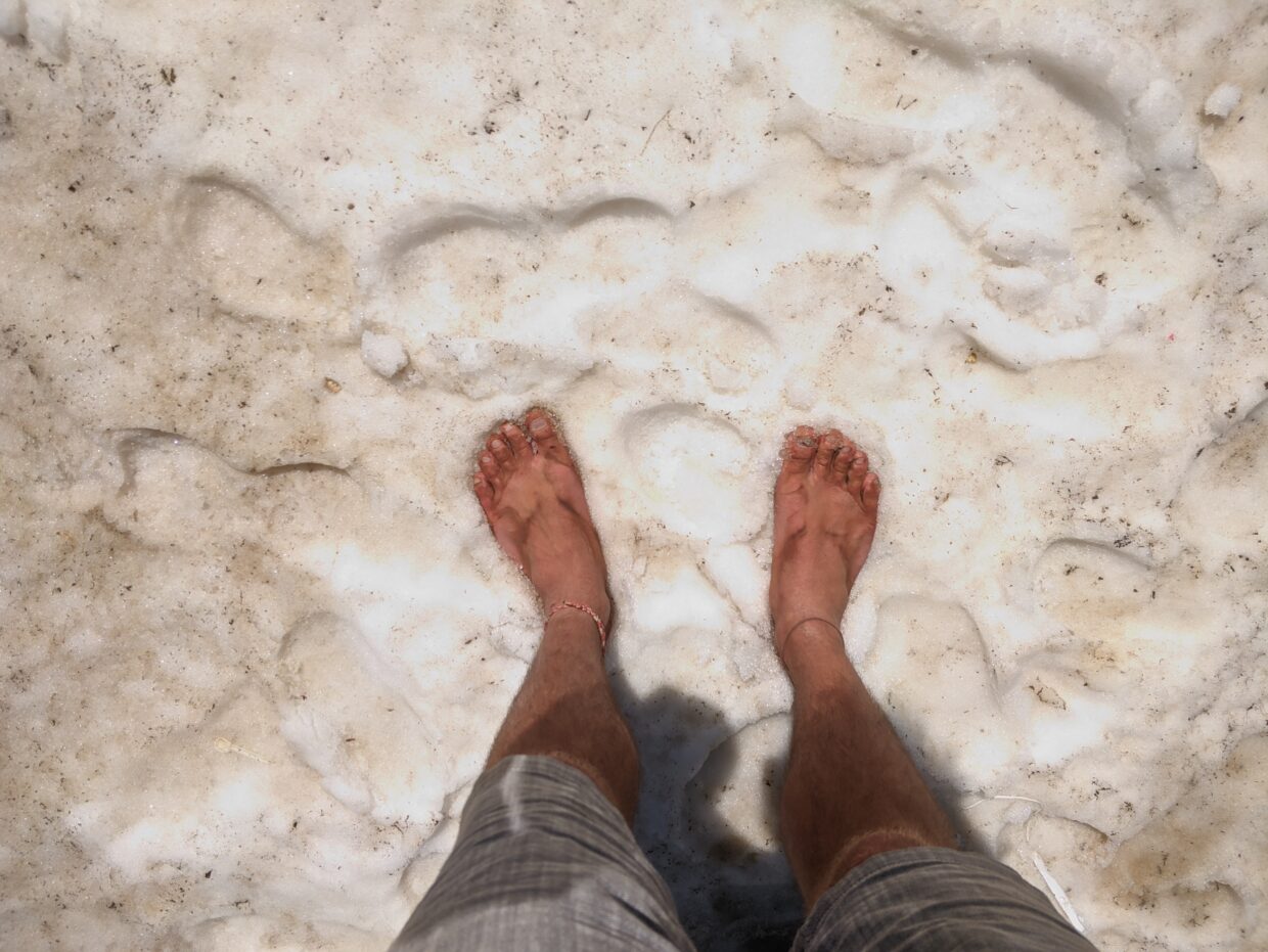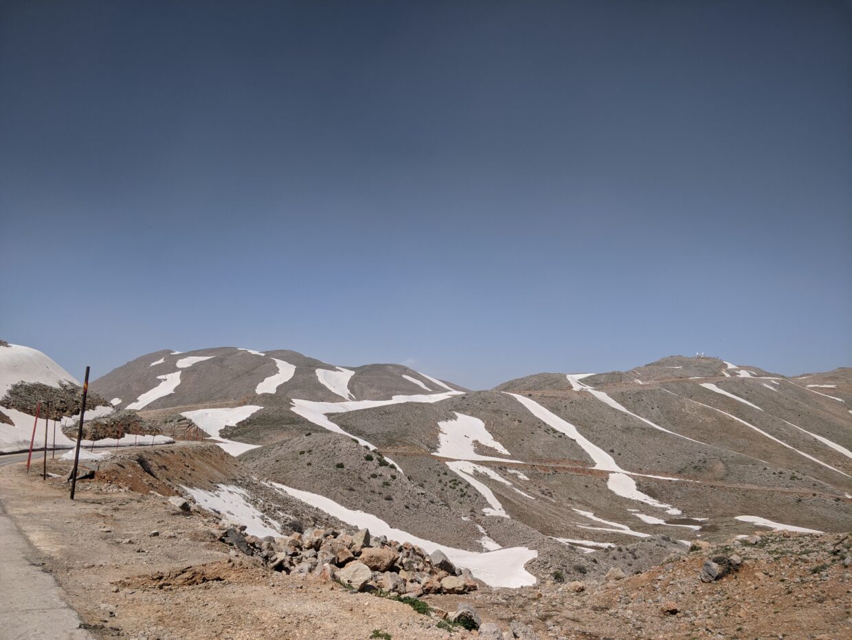 Am nächsten Tag hatte ich jedoch die Möglichkeit, das einstige Skigebiet zu betreten und war überrscht, bei 36° im Mai noch über die letzten Reste Schnee laufen zu können. Weiter kam ich aber nicht, da die Soldaten wirklich wenig Geduld mit mir hatten.