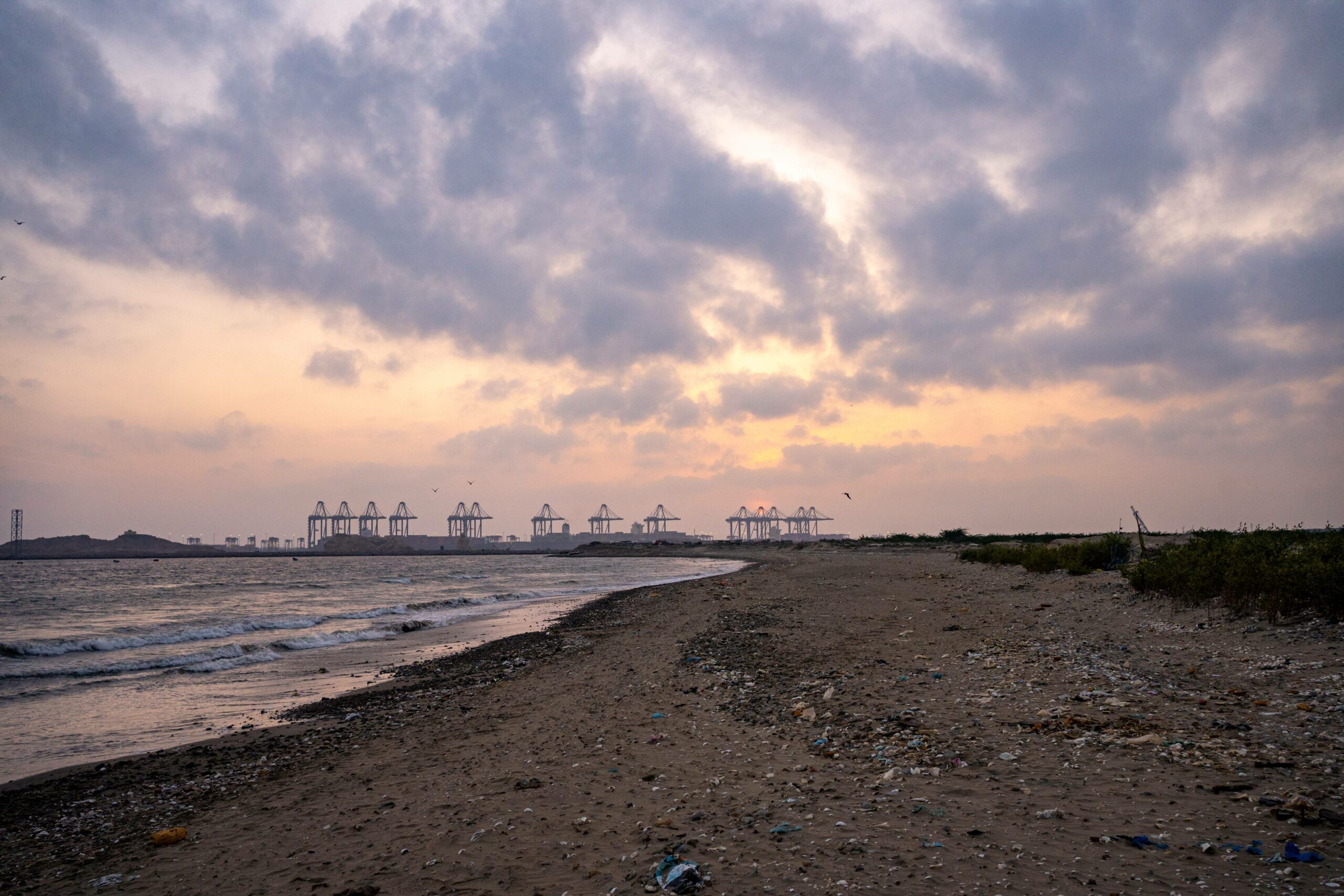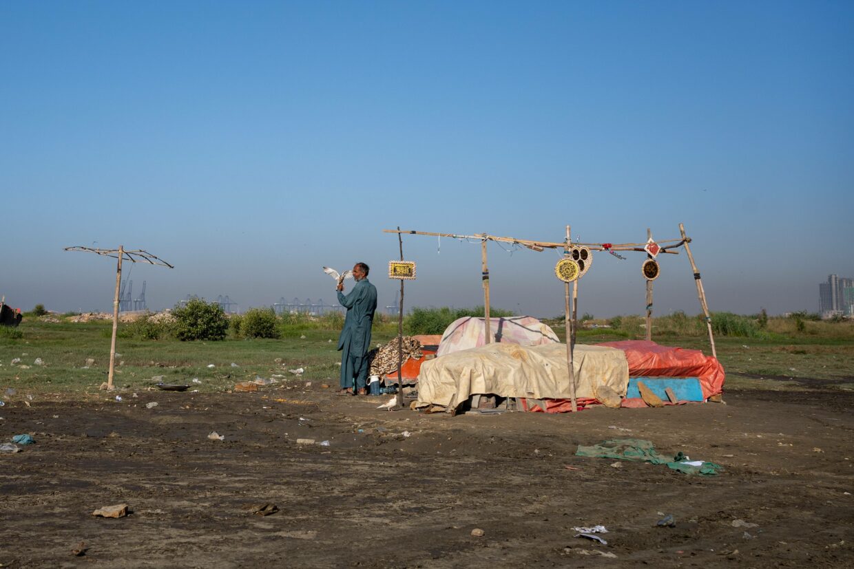 Als Ersatz für den wegen Sicherheitsbedenken untersagten Camping-Trip in den Hingol Nationalpark fuhren wir zu einem Kanalkreuz außerhalb der Stadt und schliefen unter freiem Himmel. Freund Yasir und Tochter Misha begleiteten uns.