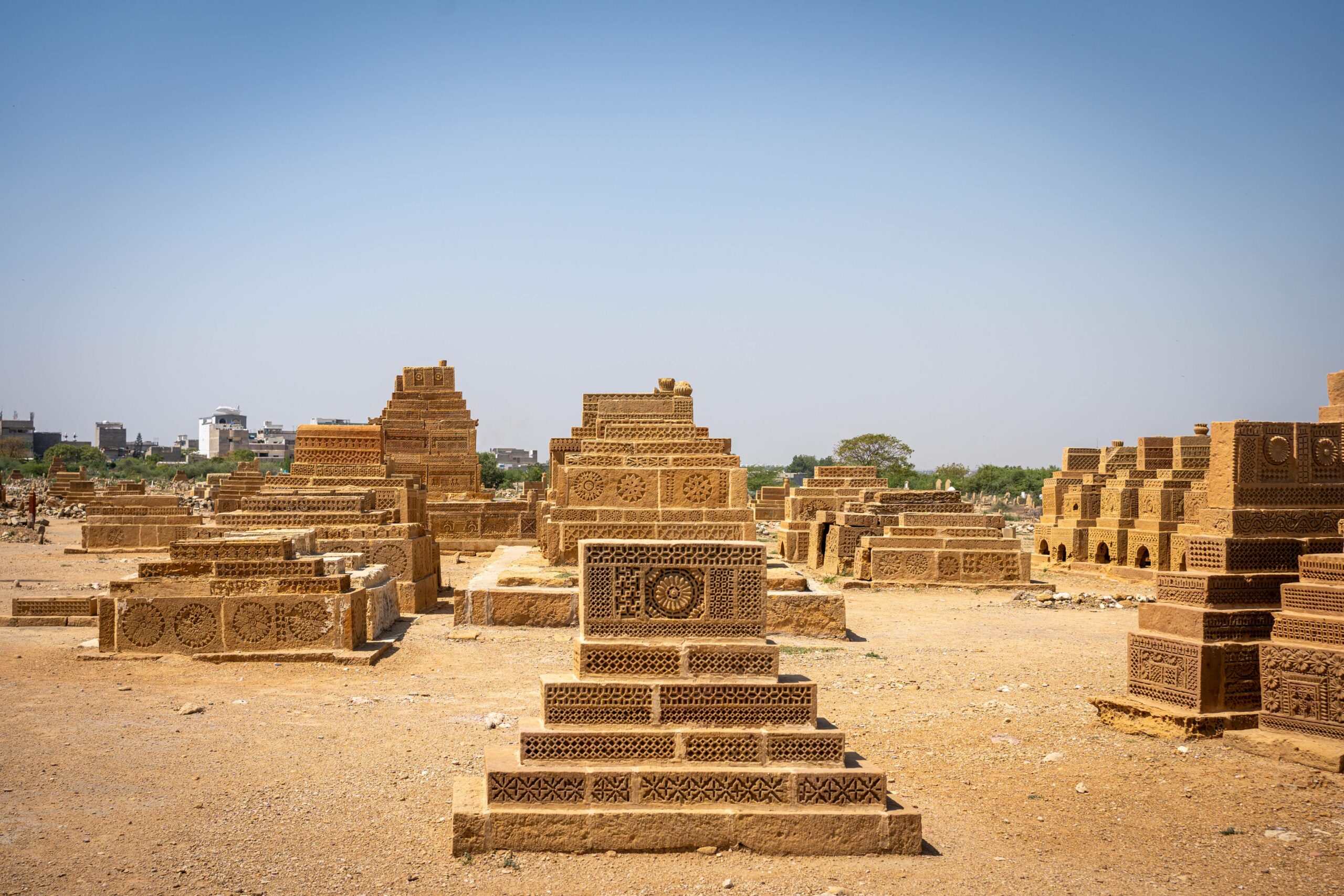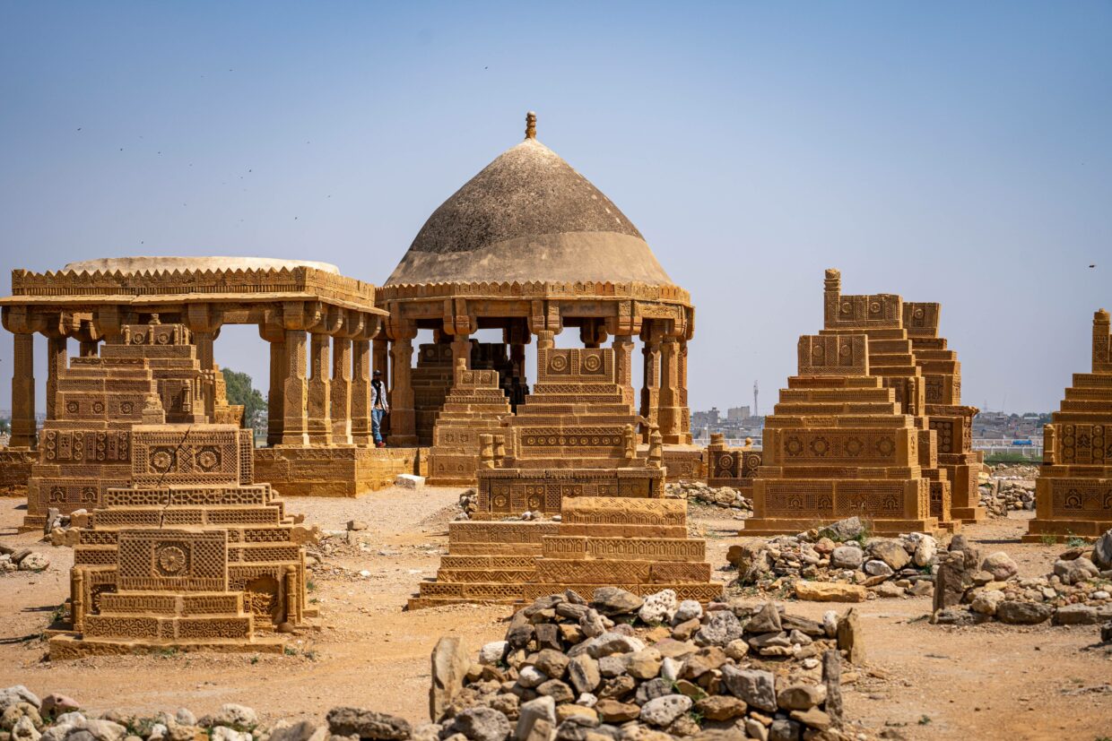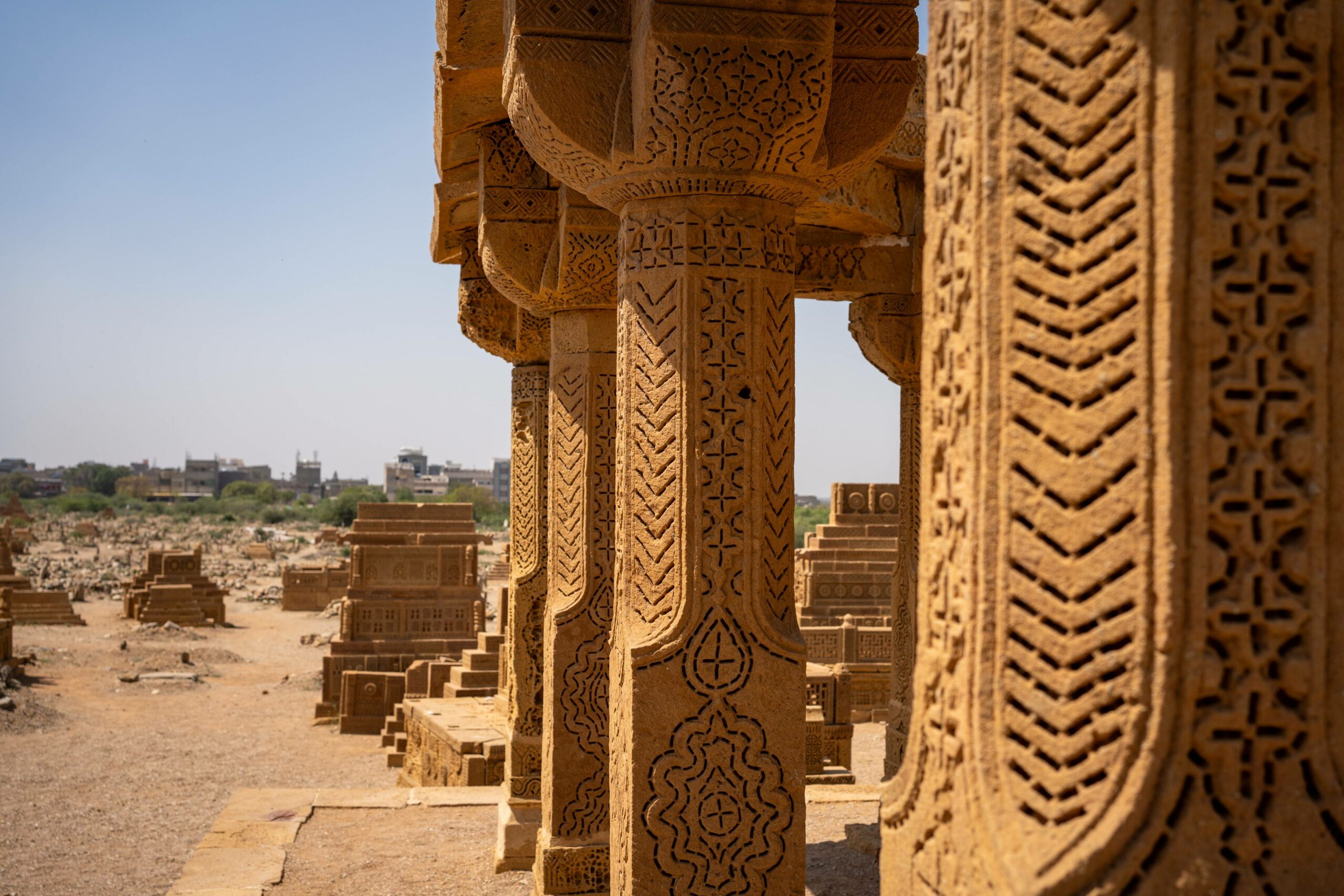An einem traditionellen Friedhof der Sindhi sind wir ebenfalls vorbeigekommen. Die typischen Muster, die sich auch in der Kleidung wiederfinden, sind in den Sandstein auf den Gräbern mit feinster Präzision hineingearbeitet und nehmen Bezug auf das Leben des Verstorbenen.
