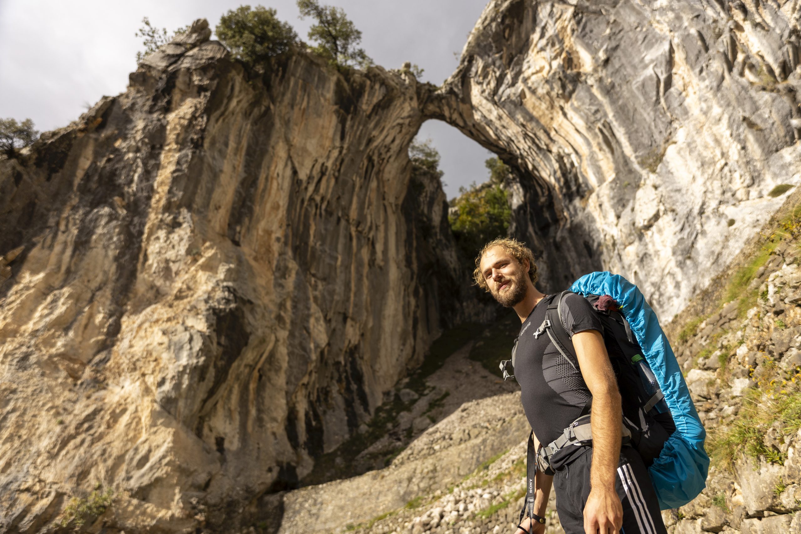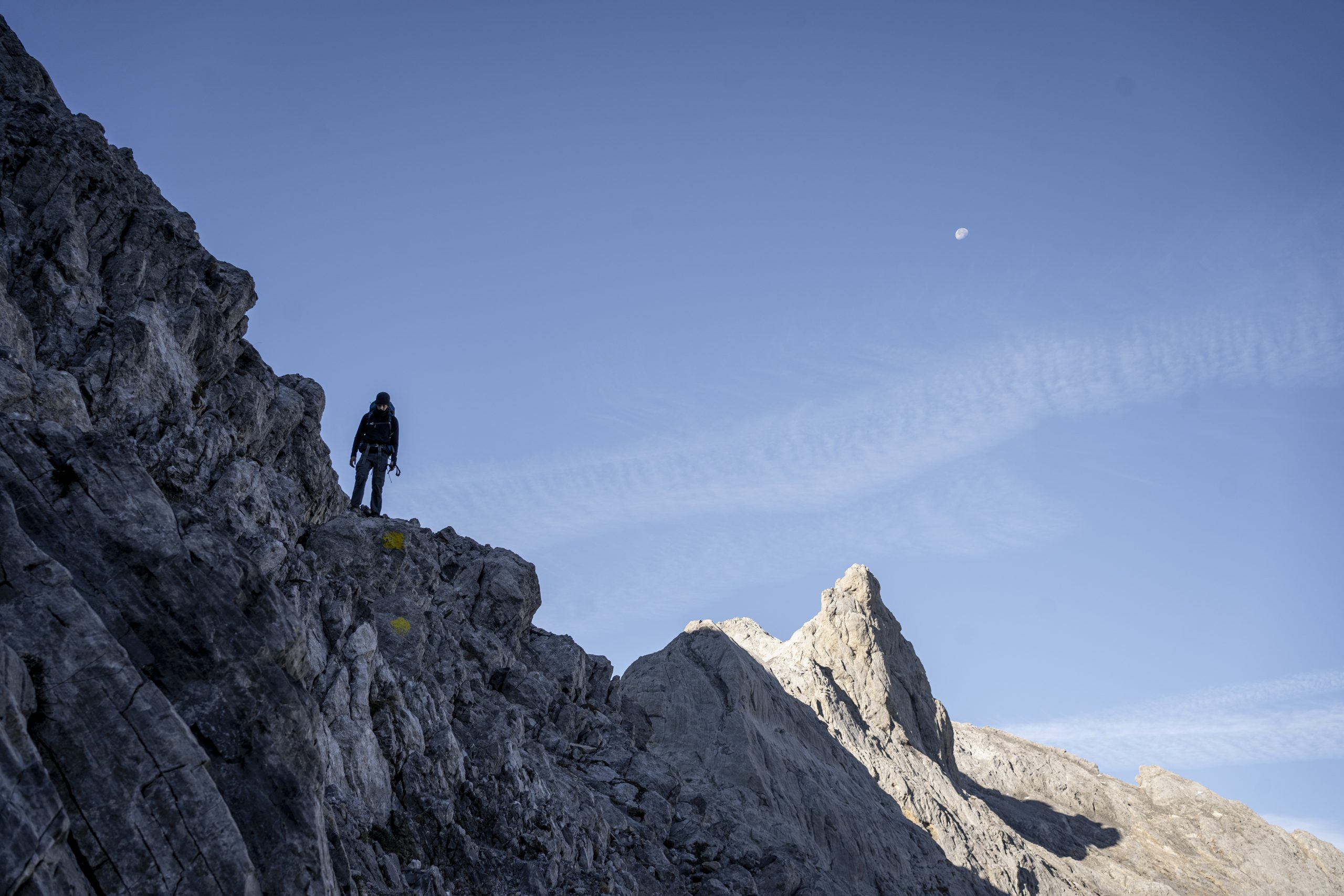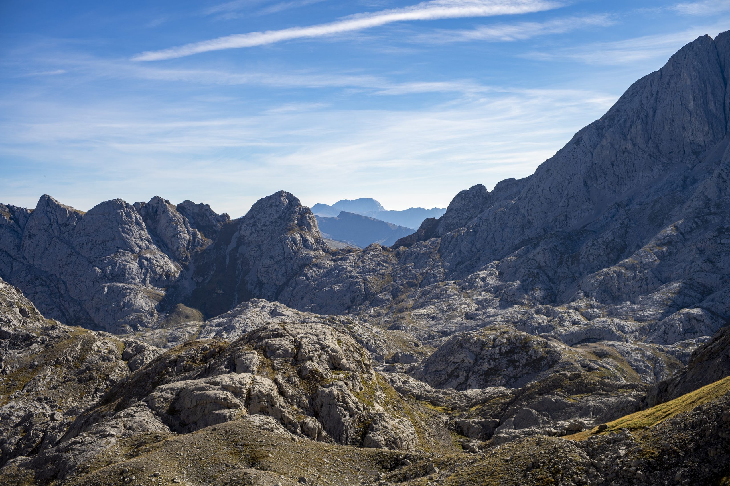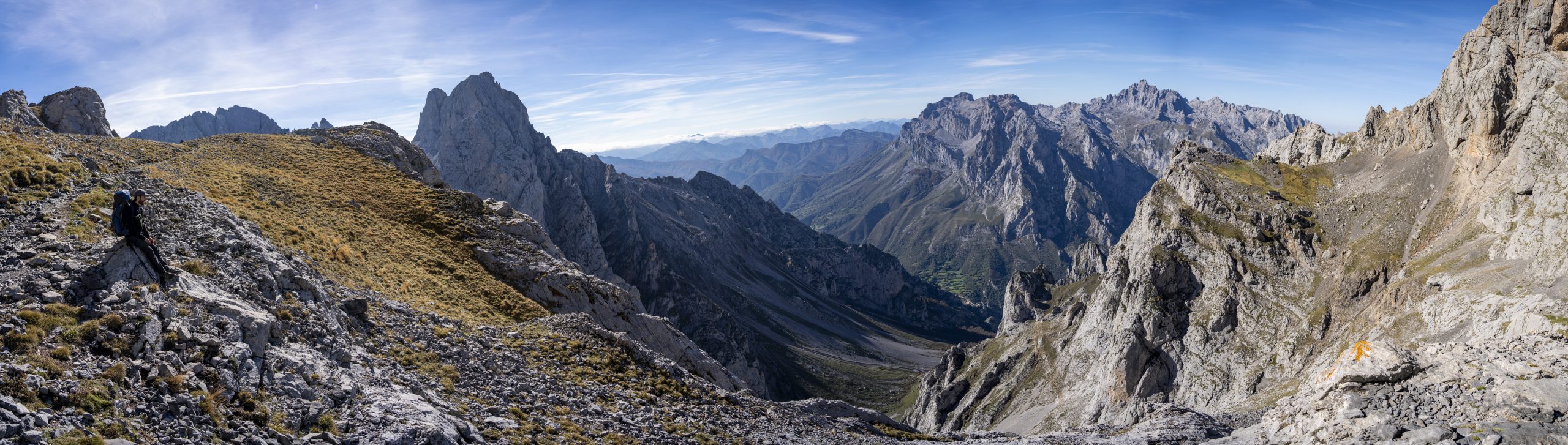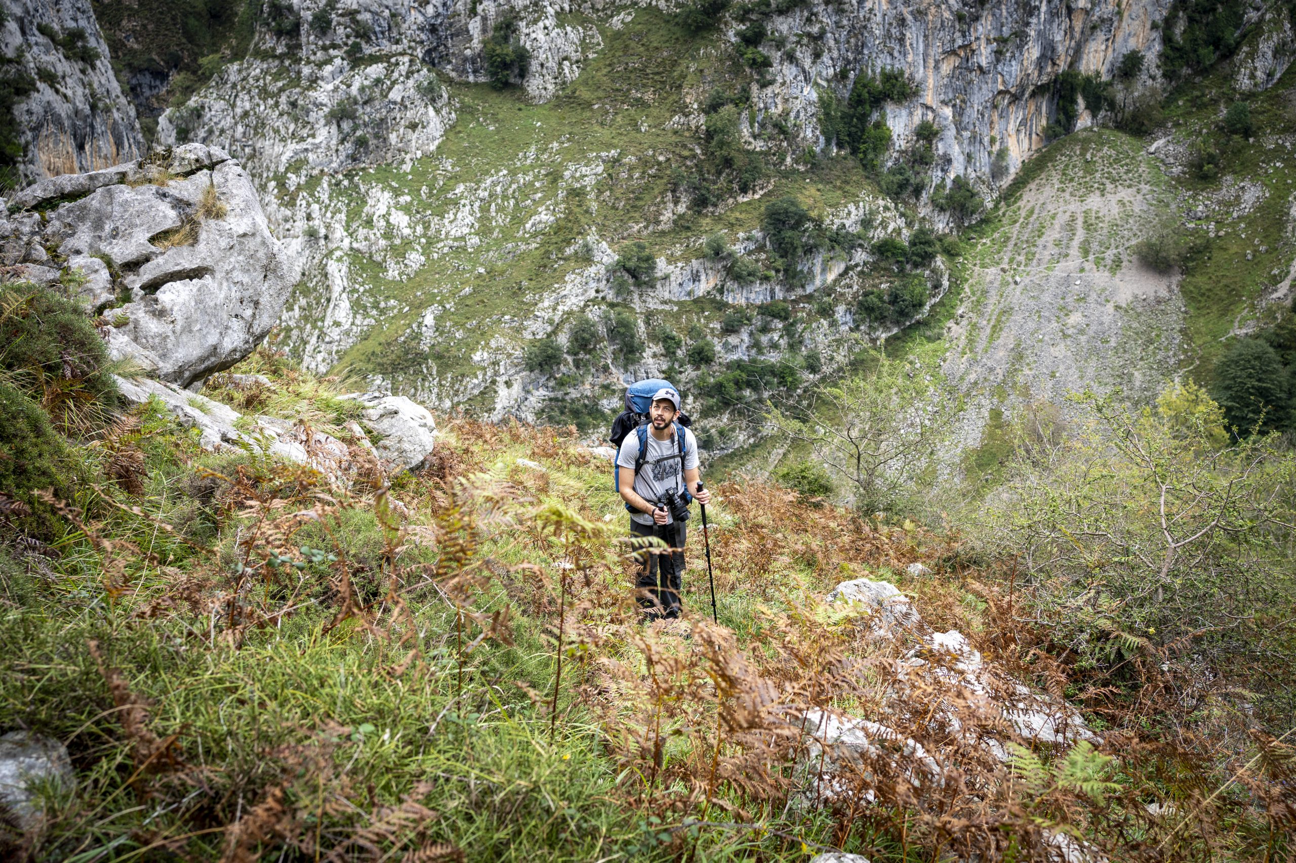 Nach diesen fantastischen Impressionen haben wir gefühlt alles gesehen und konnten zufrieden absteigen. Bloß 300 Höhenmeter aufwärts und 2400 abwärts trennten uns jetzt noch von dem Hostel in Poncebos, welches *spoiler* geschlossen hatte. Besonders in der ersten Stunde war der „Weg“ recht anspruchsvoll, jedenfalls wiesen darauf die Schilder hin, mit der Anmerkung, dass die Sicherungsseile entfernt werden mussten. Aber für erfahrene MOUNTAINGOATS wie uns, ist das gar kein Problem. Später ging es dann noch am Pico Urriellu, dem populärsten Berg der Region vorbei, der vor allem für Kletterer mit seinen zahlreichen Routen interessant ist. Ab da wurde es wieder grün und um die Bachläufe, denen wir 10km folgten, bedeckte Moos die Steine und die Atmosphäre war paradiesisch.