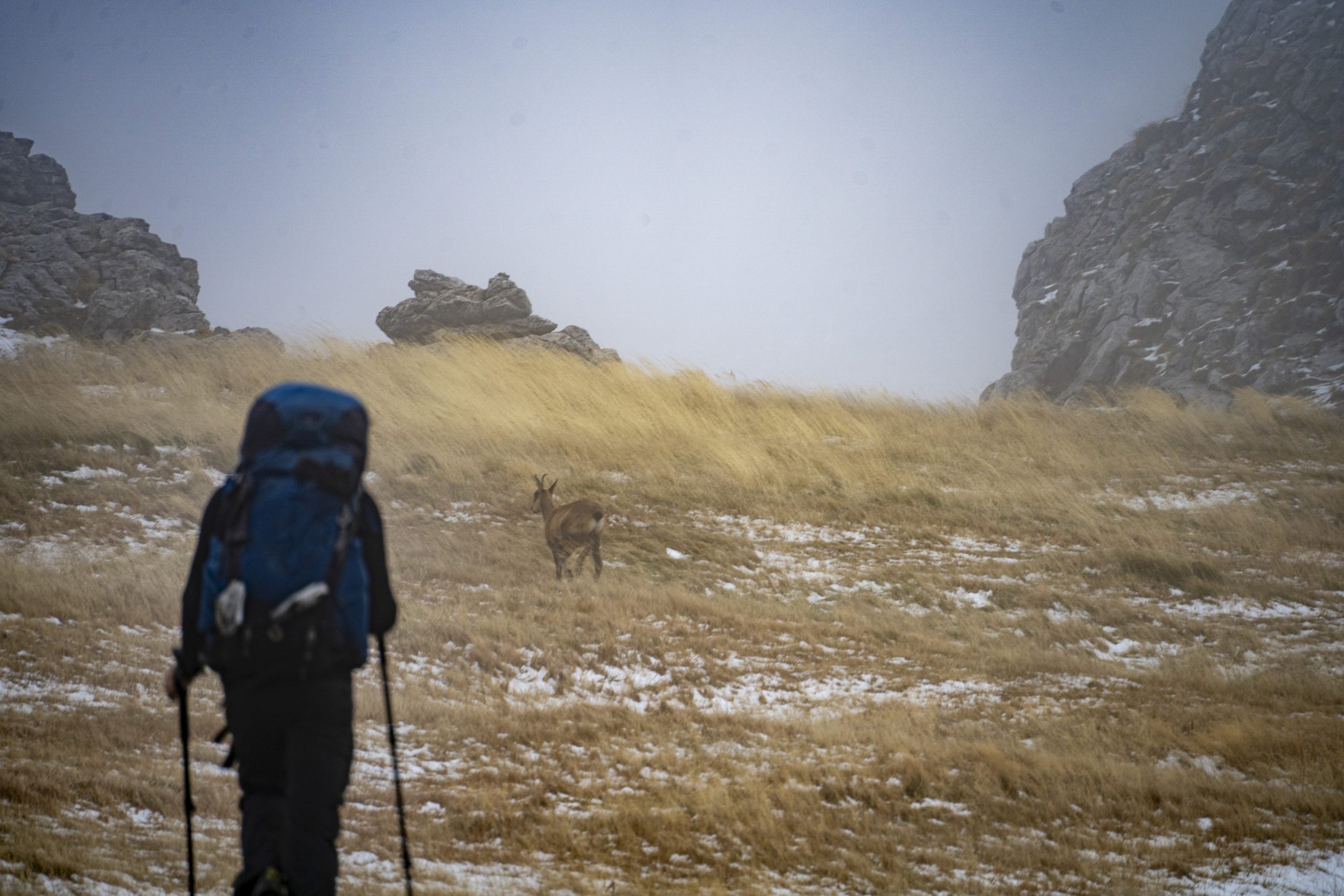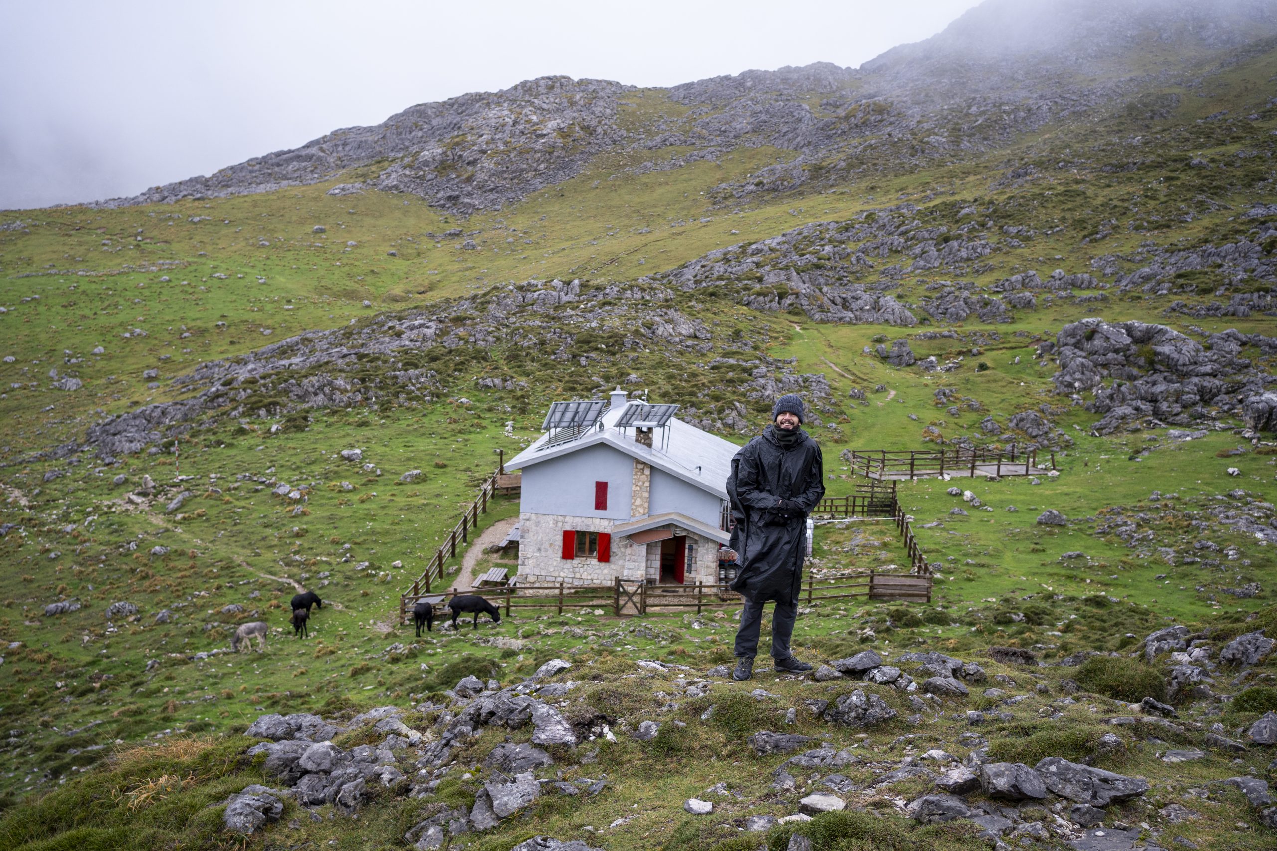 Der erste Wandertag hat sogar relativ trocken begonnen, die ersten Kilometer war sogar mein barfuß-Optimismus noch vorhanden. Vom schmalen Weg mit steilem Abgrund zum Bachlauf im Tal gab es schon imposante Felsformationen und Höhlen zu beschauen. Dieser Abschnitt war auch gut besucht, eigentlich bis zu dem Punkt, wo unsere offline-Navigation uns wegen eines fehlenden Bereichs steil den Berg hochgeführt hat. Kein wirklicher Umweg, aber ab dem Zeitpunkt haben wir auch keinen Menschen mehr gesehen. Das könnte allerdings auch am Nebel gelegen haben. Insgesamt 2380m bergauf und 990m bergab hatten wir zurückzulegen, wenn wir die Nacht beim Regen, der gegen Nachmittag einsetzte, in einer Schutzhütte verbringen wollten. Als wir diese erreichten war es bereits so nebelig, dass wir sie nur mit GPS finden und erst auf 20m Distanz sehen konnten. Ich überlegte noch ernsthaft, dass wir uns die 18€ für das Bett sparen können und die Nacht im Zelt verbringen, aber dann fiel mir wieder ein, dass wir keine Voluntäre mehr sind und ich eigentlich Geld verdiene 😀 Wir haben uns schon krass verrückt gefühlt, weil sich so eine Tour bei dem Wetter niemand antun würde – und in der Tat waren wir auch mit der Gastgeberin die einzigen dort – doch als gegen 10 das Gewitter seinen Höhepunkt erreichte, kam die wöchentlich wechselnde Schicht Ablösung nach 7km Aufstieg angerannt. In dünnem Pulli, kurzer Hose und so durchgefroren, dass sofort das Wasser für die Dusche aufgeheizt werden musste. Da habe ich mich in meiner windabweisenden Softshell-Jacke mal richtig gut vorbereitet gefühlt!