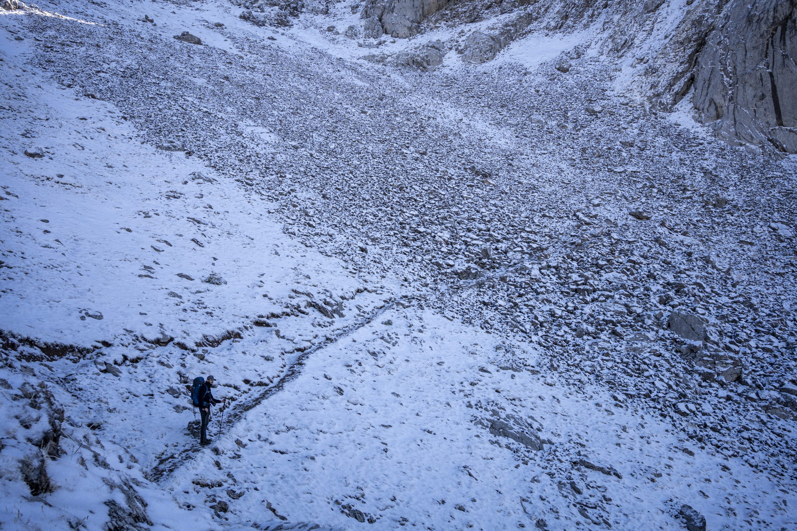Immer wenn man dachte, man hat einen Gipfel erfolgreich umwandert, kam das nächste Felsental, das durchquert werden wollte. Man kann im 360° Bild oben vielleicht erahnen, wo der Weg weitergeht, um den Gipfel herumzukommen. Von solchen Tälern gab es bestimmt 5 auf dieser „ebenen Strecke“, die vor allem im Schnee sehr schön anzusehen, aber auch nicht ganz ungefährlich war. Nach all den schönen Eindrücken und Sonnenstrahlen war es dann gegen 16 Uhr wieder Zeit für etwas kalte Nässe. Ausgerechnet kurz vor einer winzigen Schutzhütte mit Übernachtungsmöglichkeit wurde der Wind richtig ungemütlich und das Wetter (aus meiner Sicht) unberechenbar. 9km hatten wir erst geschafft, 7 noch vor uns. Ich sah es als ein Zeichen, die Wanderung an der Stelle zu beenden, doch Nelson war optimistisch, vor einem möglichen Sturm wieder unter der Baumgrenze zu sein und bei Sonnenuntergang in der nächsten Unterkunft. So sind wir… Wenn einer sich unsicher fühlt, wird der andere immer noch mutiger. Also ging es weiter. Wenn der Untergrund es zuließ, rannte ich. Ich will nicht sagen, dass ich in den nächsten 2h irgendwas toll fand, aber immerhin haben wir es bis in den Wald geschafft und ab da war die Nässe ohne Wind wieder erträglich. Der Wald war sogar richtig hübsch mit vielen alten Buchen und Unmengen an Pilzen. Die Farben so satt, als hätte ich selbst welche gegessen. Um 19 Uhr waren wir dann endlich in der hübschen Unterkunft im Ranchstil. Hier konnten wir dem Angebot eines warmen Menüs zusammen mit den anderen 4 Gästen nicht widerstehen und haben nichts bereut. Dieser Tag war wohl der längste und (bis jetzt) auch der härteste.