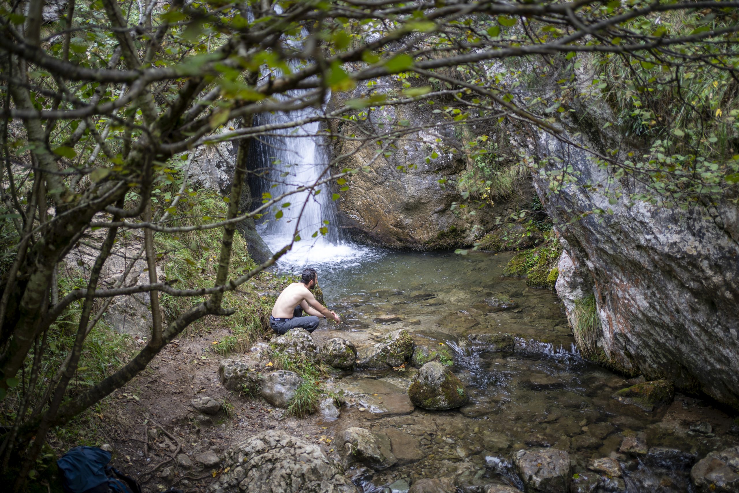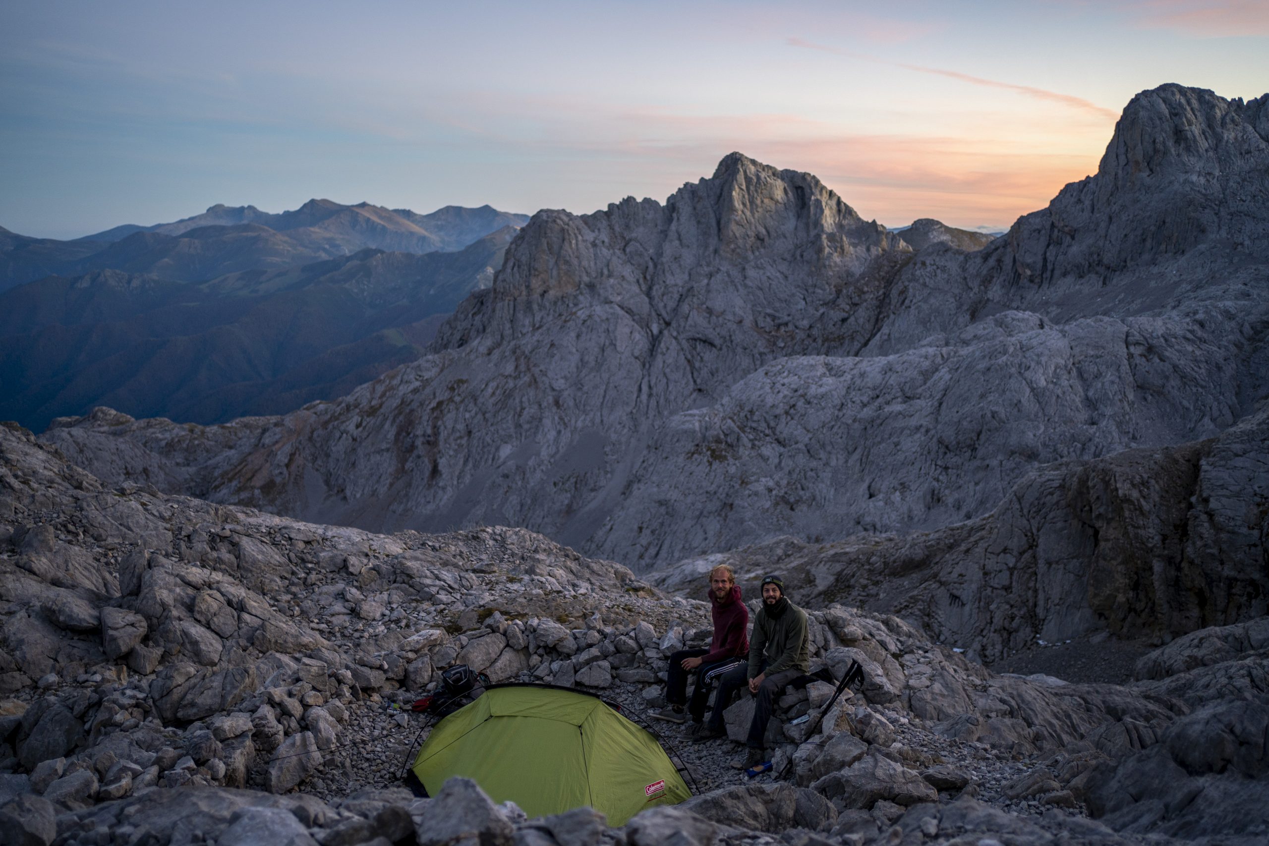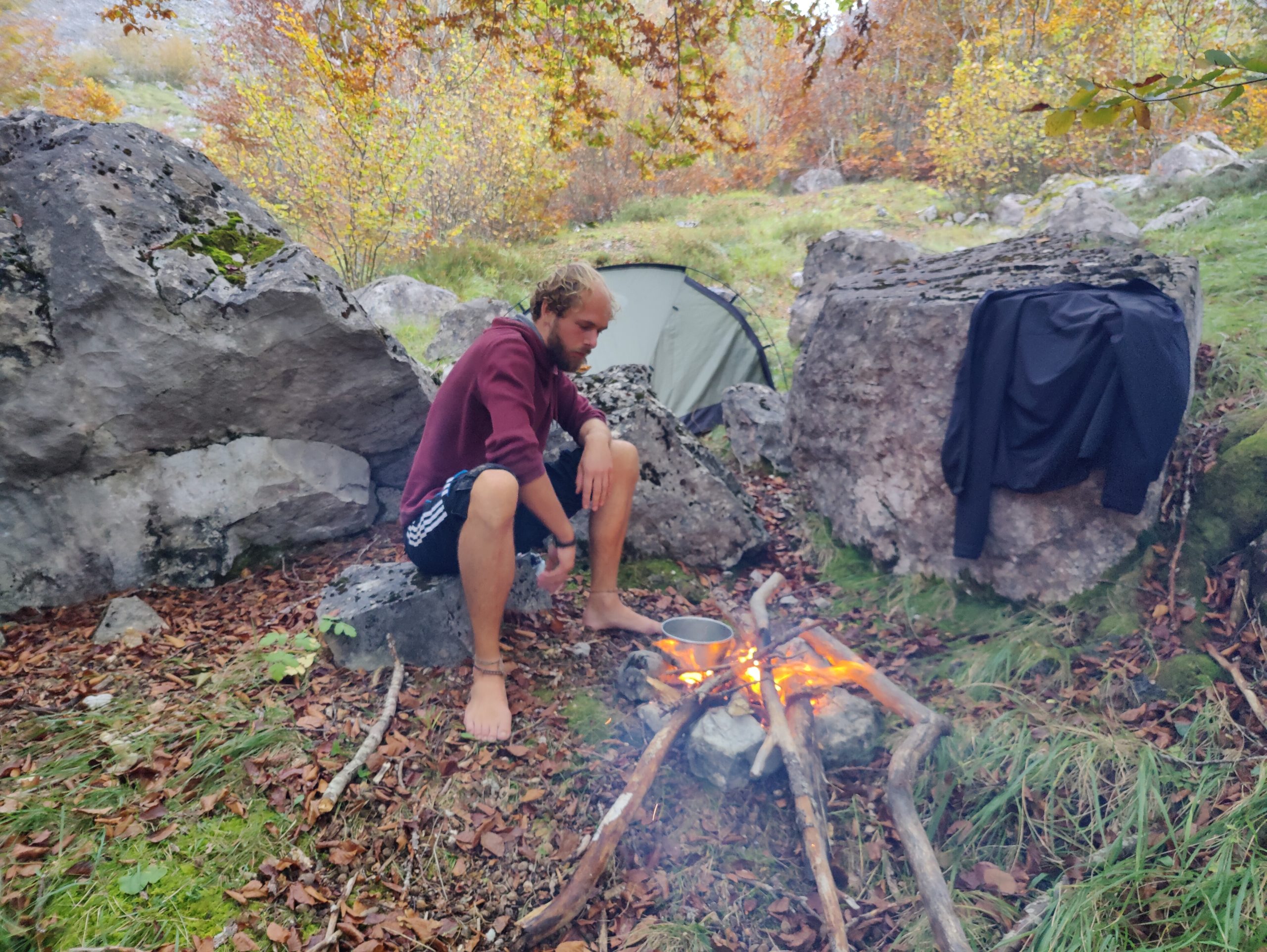 Verwöhnt von der guten Küche am Vortag freuten wir uns schon darauf, dass wir bald durch eine Ortschaft kommen: Posada de Valdeón. Unterwegs gab es wieder reichlich Wald zu bestaunen und viele Bäche, die wir heute nur überqueren mussten, im Gegensatz zu gestern wo der Weg aus Bächen bestand. Da sogar die Überlegung aufkam, nur einen halben Tag zu wandern und in einem Hostel oder im Zelt zu übernachten, waren wir ganz entspannt. Nach einer längeren Pause im Cafe mit Internetempfang, Bocadillos und Tortilla oder Patatas Bravas zu jedem Getränk waren wir jedoch wieder genügend gestärkt für den nächsten Anstieg. Nicht gestärkt genug für 1400 Höhenmeter zur nächsten Hütte, aber zumindest um auf dem Weg dorthin einen schönen Platz zum Zelten zu finden. Nach 15km, 770m Auf- und 890m Abstieg war dieser Tag wahrscheinlich der entspannteste. Den steilen und gut in den Berg integrierten Weg ab Posada konnten wir nichtmals erkennen, als wir direkt davor standen. Kurz vor der Baumgrenze fanden wir etwas flachen Grund für unser Zelt und hatten sogar noch Zeit vor dem Regen, um das Zelt aufzubauen und das Feuer heiß genug zu bekommen. Als Vorspeise gab es einen Steinpilz, Maronen und einen Fliegenpilz für gute Träume. Die chinesische Nudelsuppe haben wir noch auf dem Feuer gekocht, aber wegen des Regens lieber im Zelt gegessen. Da war es endlich, das Freiheitsgefühl! Es ist einfach etwas anderes, wenn man in der Wildnis übernachtet.