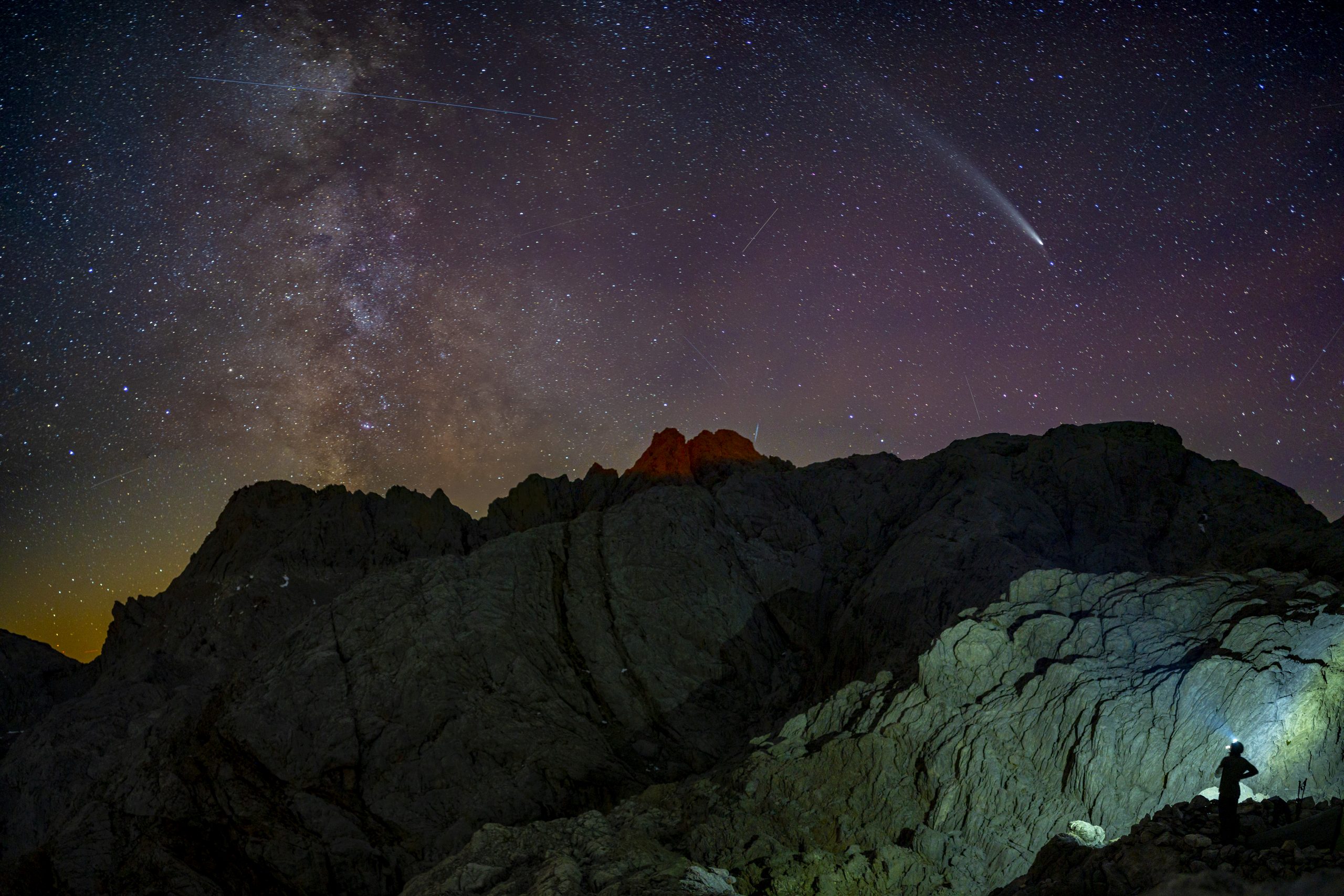 Die Cabaña erinnerte von außen stark an eine SciFi Hütte von einem entfernten Wüstenplaneten und von innen an ein beheiztes U-Boot aus dem kalten Krieg. Woher die Wärme und die hohe Luftfeuchtigkeit kam, konnten wir uns nicht erklären, da keiner da war. Doch obwohl das kompakte 3-Stockbett Platz für 6 Personen bieten soll, waren wir uns schnell einig, dass wir das Zelt bevorzugen. Wir kochten und aßen windgeschützt unter einem atemberaubenden Sternenhimmel, in dem bis zum Mondaufgang sogar noch der Komet Tsuchinshan-ATLAS gut sichtbar war.