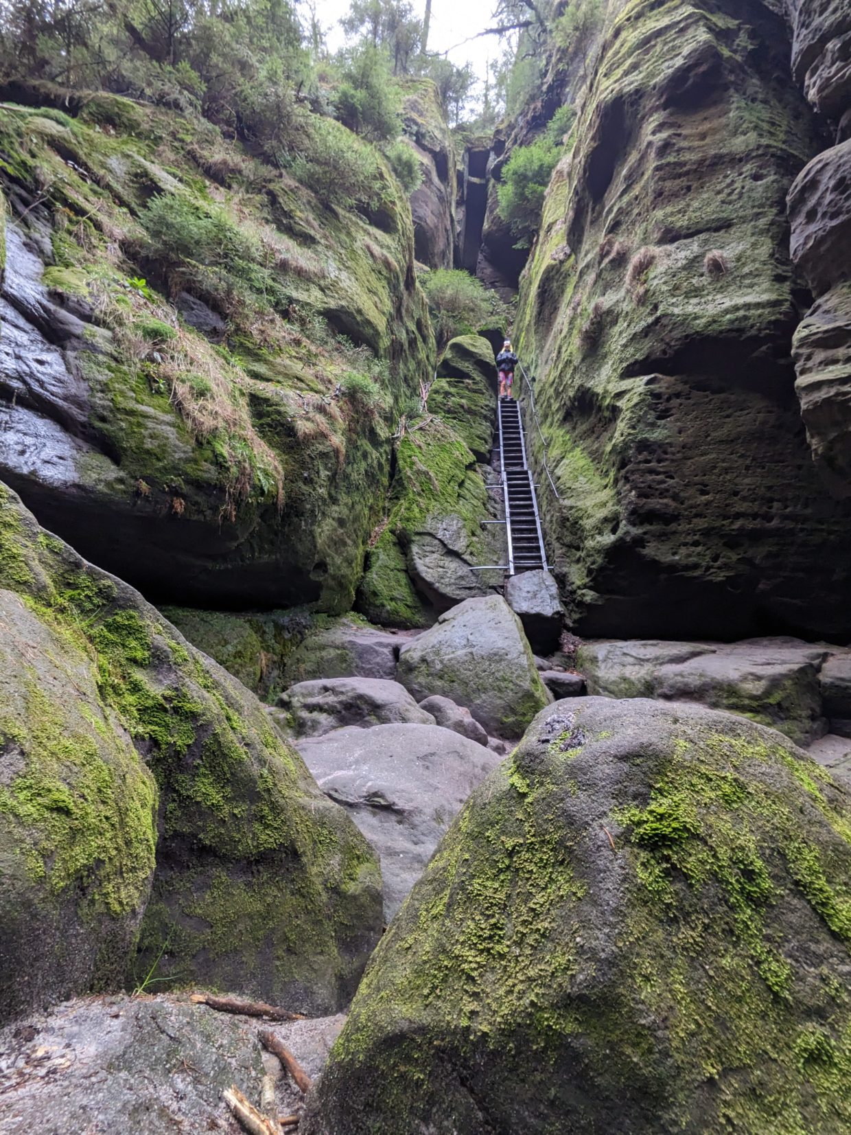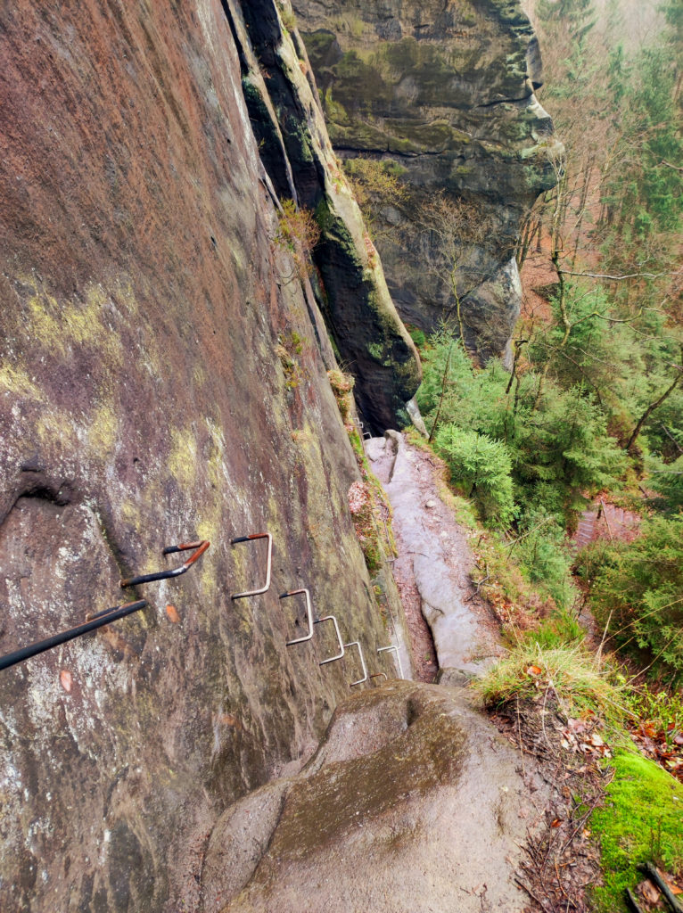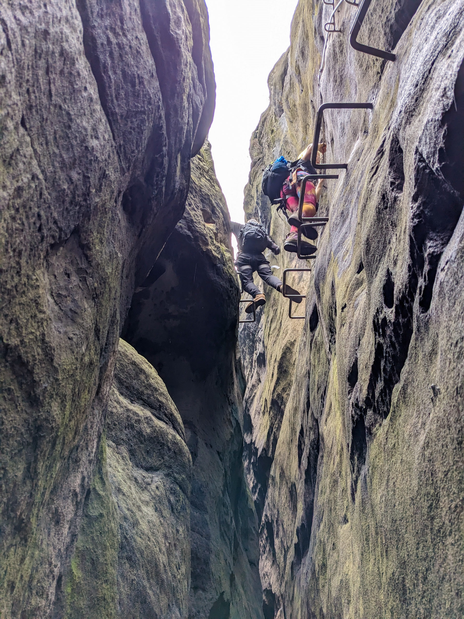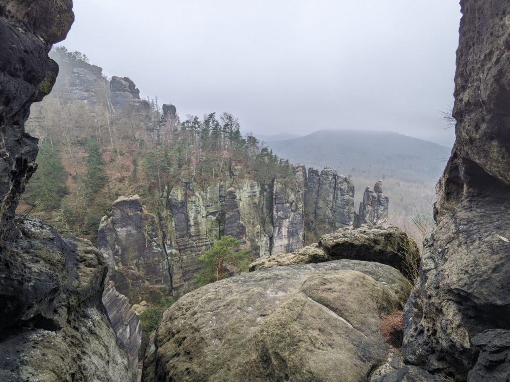 Wie vermutlich auch Casper David Friedrichs Wanderer über dem Nebelmeer mussten auch wir erstmal durch das Nebelmeer hindurchtauchen, bevor wir (manchmal) mit einer Aussicht in die Ferne belohnt wurden. Doch auch ohne Fernblick ist eine Wanderung durch die hintere Sächsischen Schweiz wegen der malerischen Wege, eindrucksvollen Felsformationen und soaßigen Kletterpasagen sehr empfehlenswert.