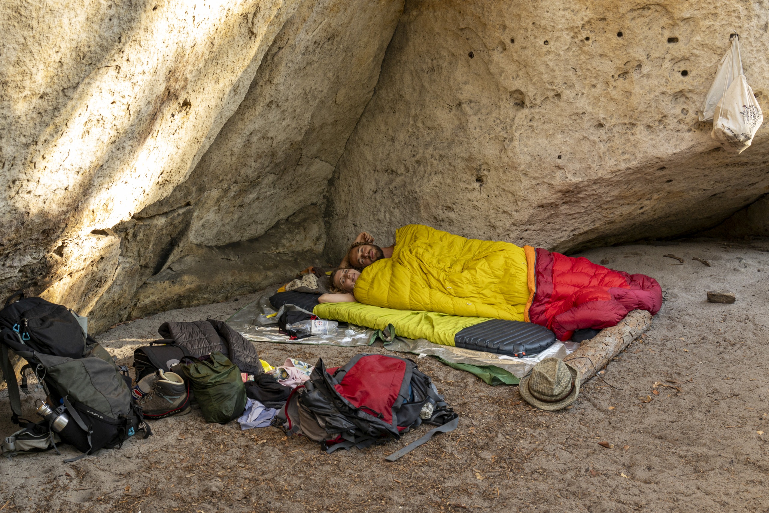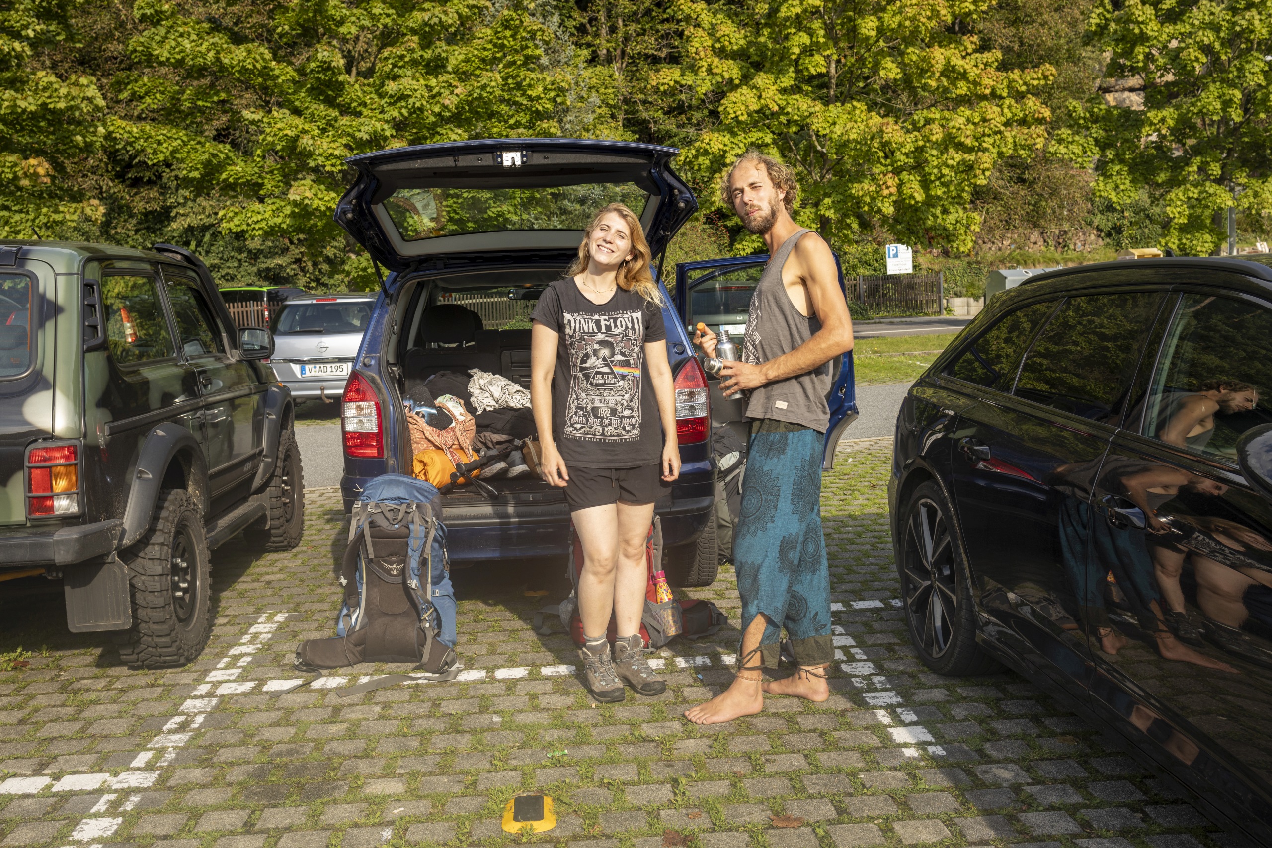 Entgegen der Wettervorhersagen entschieden wir uns, für die nächsten 4 Tage kein Zelt mitzunehmen. Wir hatten ohnehin nur das 2-Personen-Zelt im Auto und spekulierten darauf, dass wir rechtzeitig zum Regen Boofen finden würden wo wir auch über Nacht trocken wären. Da wir es nicht anders gewohnt waren, gingen wir davon aus, Quellen für Trinkwasser unterwegs zu finden und sparten beim Wasser ebenfalls am Gewicht. Matratzen, gute Schlafsäcke, Essen und Kochutensilien gehörten allerdings sehr wohl zu unserem Gepäck.