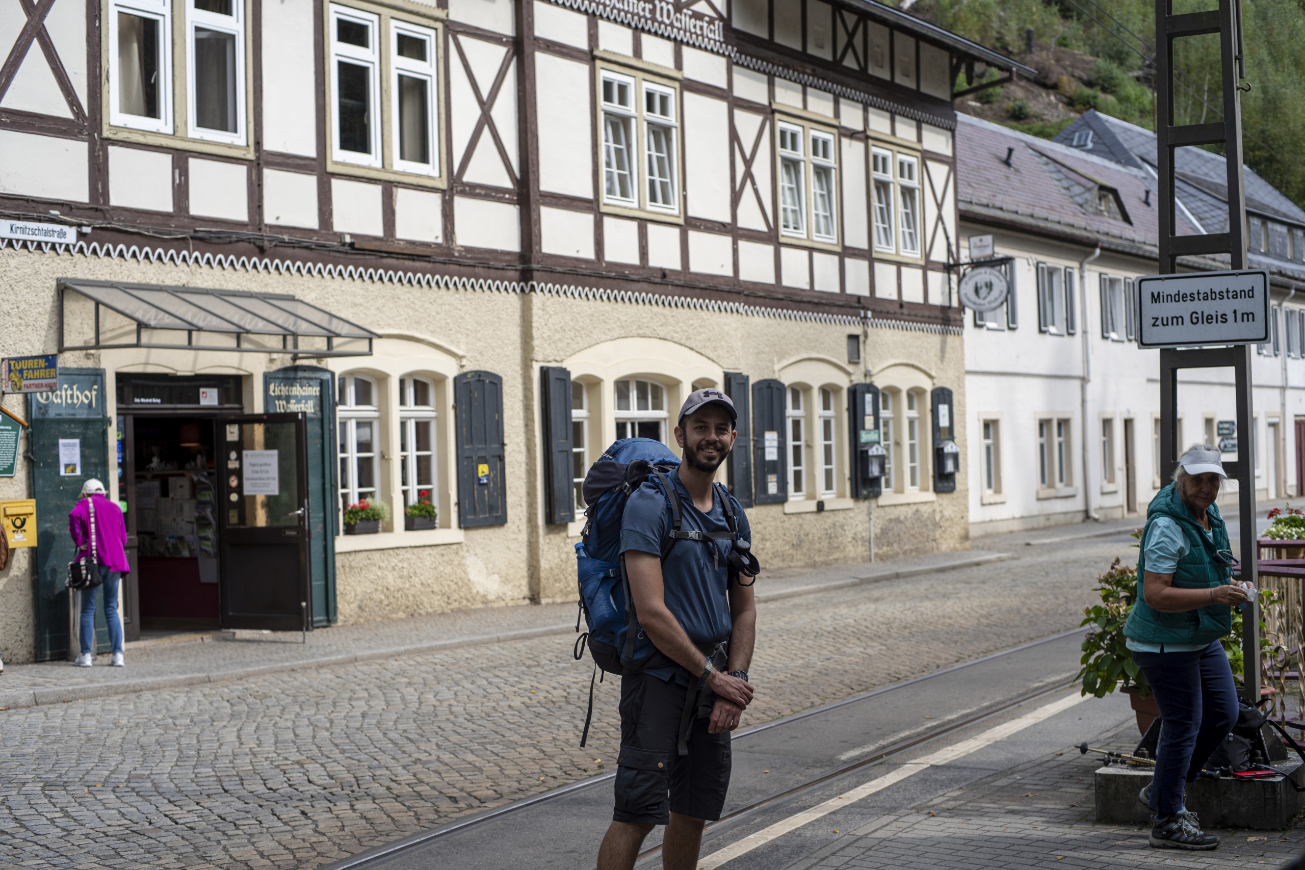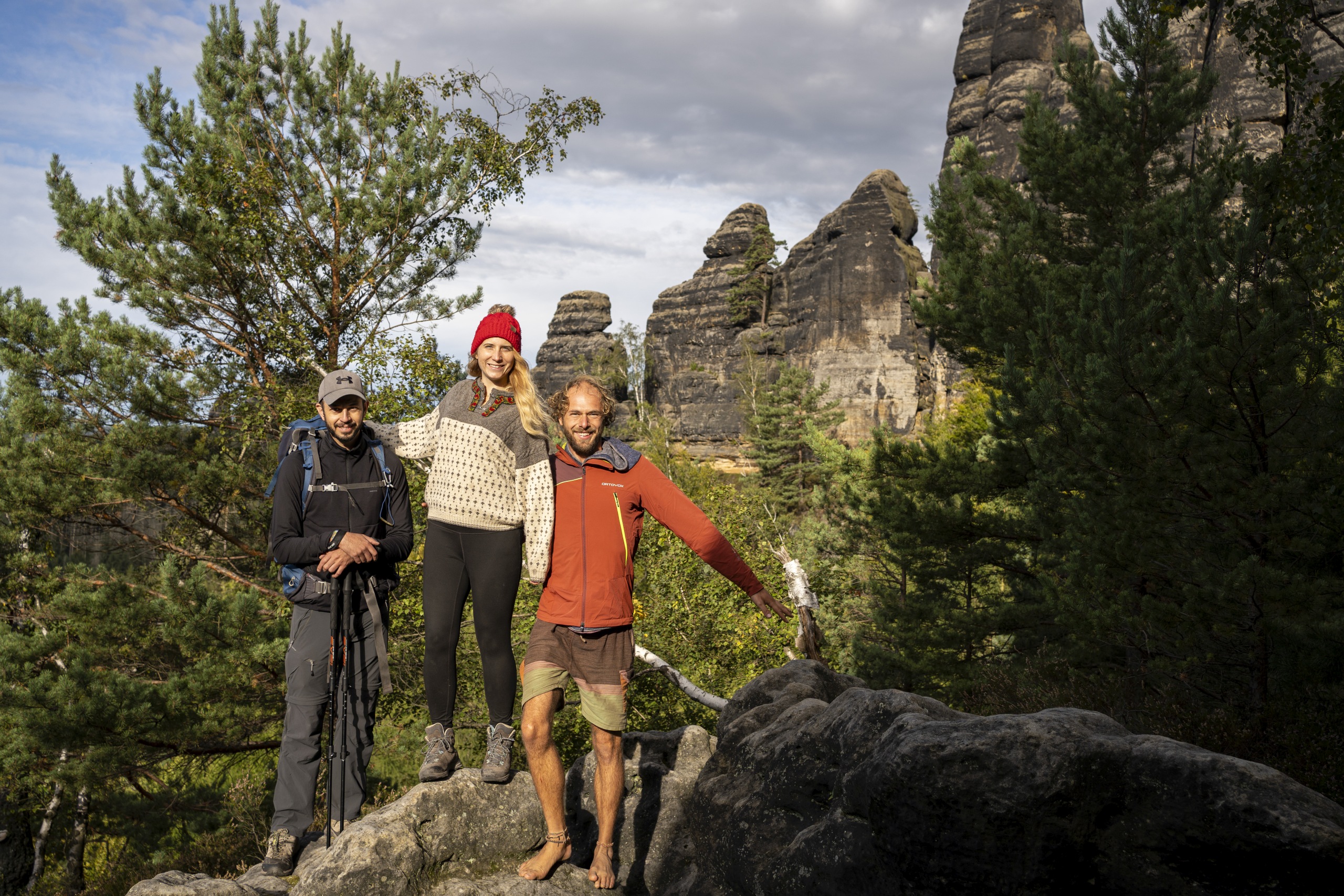 Die dunklen Wolken kamen am ersten Tag in etwa so schnell wie die Realisation, dass wir nicht genug Wasser haben. Der Regen würde zu wenig sein, um ihn zum Kochen zu verwenden, also nutzte ich die Flüssigkeit aus den Konserven mit dem Rest Trinkwasser für den Eintopf, während Nelson und Valerie in der Dämmerung mit allen leeren Flaschen eine Quelle, die auf der Karte eingezeichnet war, aufsuchten. Eine gute Gelegenheit, dachte ich mir, dass sich meine zwei Lieblingsmenschen kennenlernen können. Umso blöder, wenn wir uns nicht mehr wieder fänden 😀 – Natürlich kamen sie munter zurück zum Lager, allerdings ohne Wasser, da die Quelle trocken war. Damit war klar, dass unser erstes Ziel das nächste Tal ist, durch das die Kirnitzsch fließt – denn dort gibt es eine Gaststätte mit fließendem Wasser, Bier und regionalen Speisen.