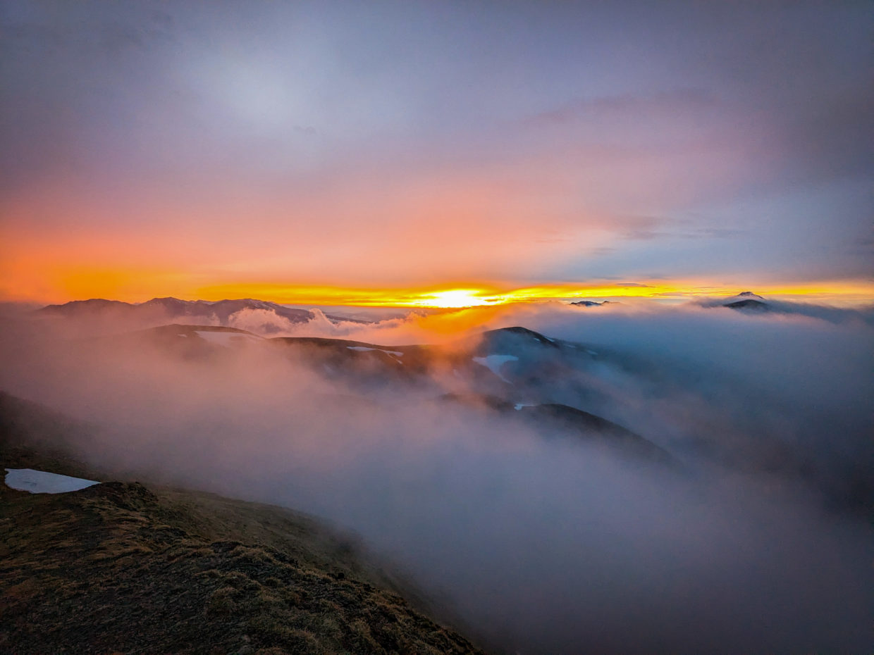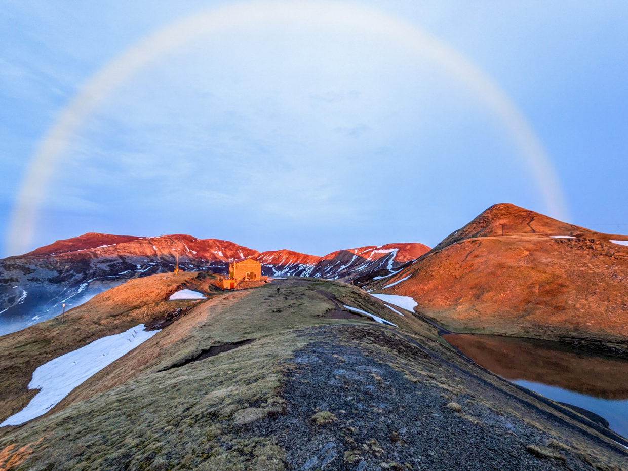 Getreu dem neuen Motto „Alles, was gut gehen kann, wird auch gut gehen“ kamen wir vor Sonnenuntergang an einem Rifugio auf 1800m an. 2 Plätze waren noch frei, da jemand kurzfristig abgesagt hat. Wir hatten Glück, weil es am nächsten Tag schließen sollte. Noch mehr Glück hatten wir jedoch, weil sich nun die Sonne zum ersten und letzten Mal zeigen sollte. Ein atemberaubendes Lichterspiel, dass selbst der Gastgeber, der die Hütte seit 20 Jahren betreibt, so nur selten gesehen hat.
