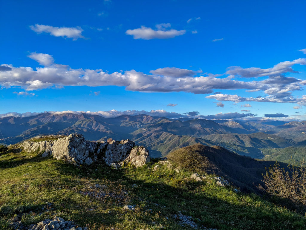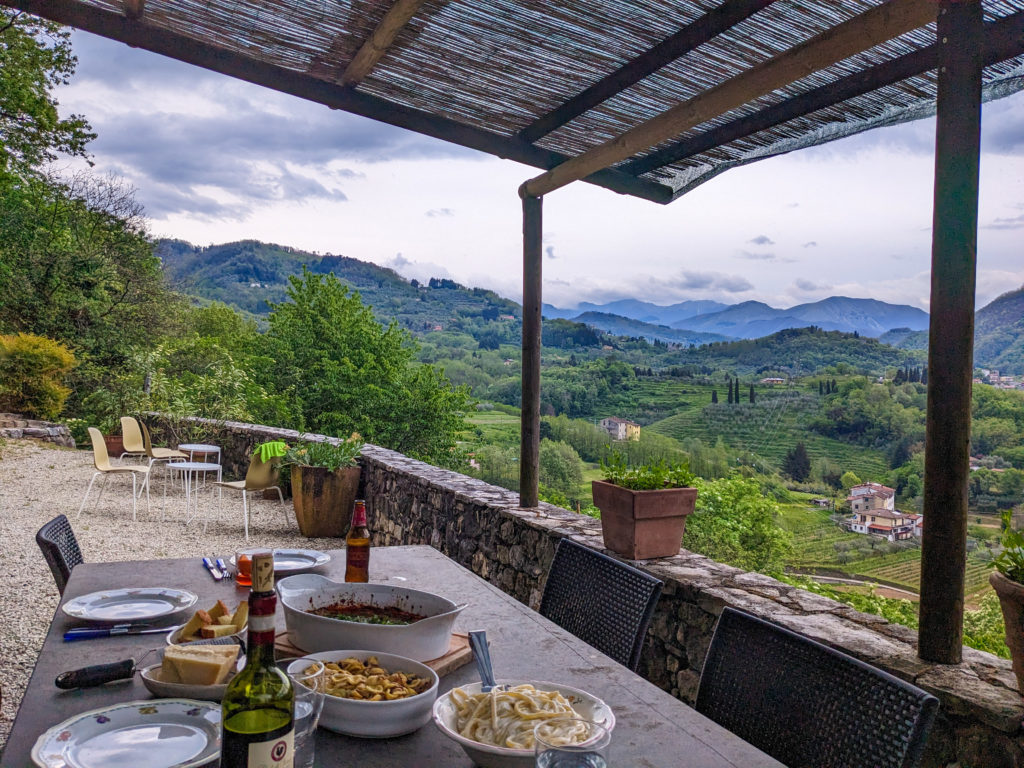 Nicht weit vom Apartment gab es eine Ruine mit wundervoller Aussicht Auf die gesamte Umgebung. Florenz, Lucca und sogar das Meer konnte man durch die Berge erblicken. Das Wetter war schön, wir hatten mit Artischocken, grünem Spargel, Zucchiniblüten, Pesto Rosso und Parmesan eigentlich alles dabei, was ein gutes italienisches Abendessen braucht. der Berg war etwas uneben, was sich mit geschickt verteilten Steinchen und vertrocknetem Gras gut ausbessern ließ.
